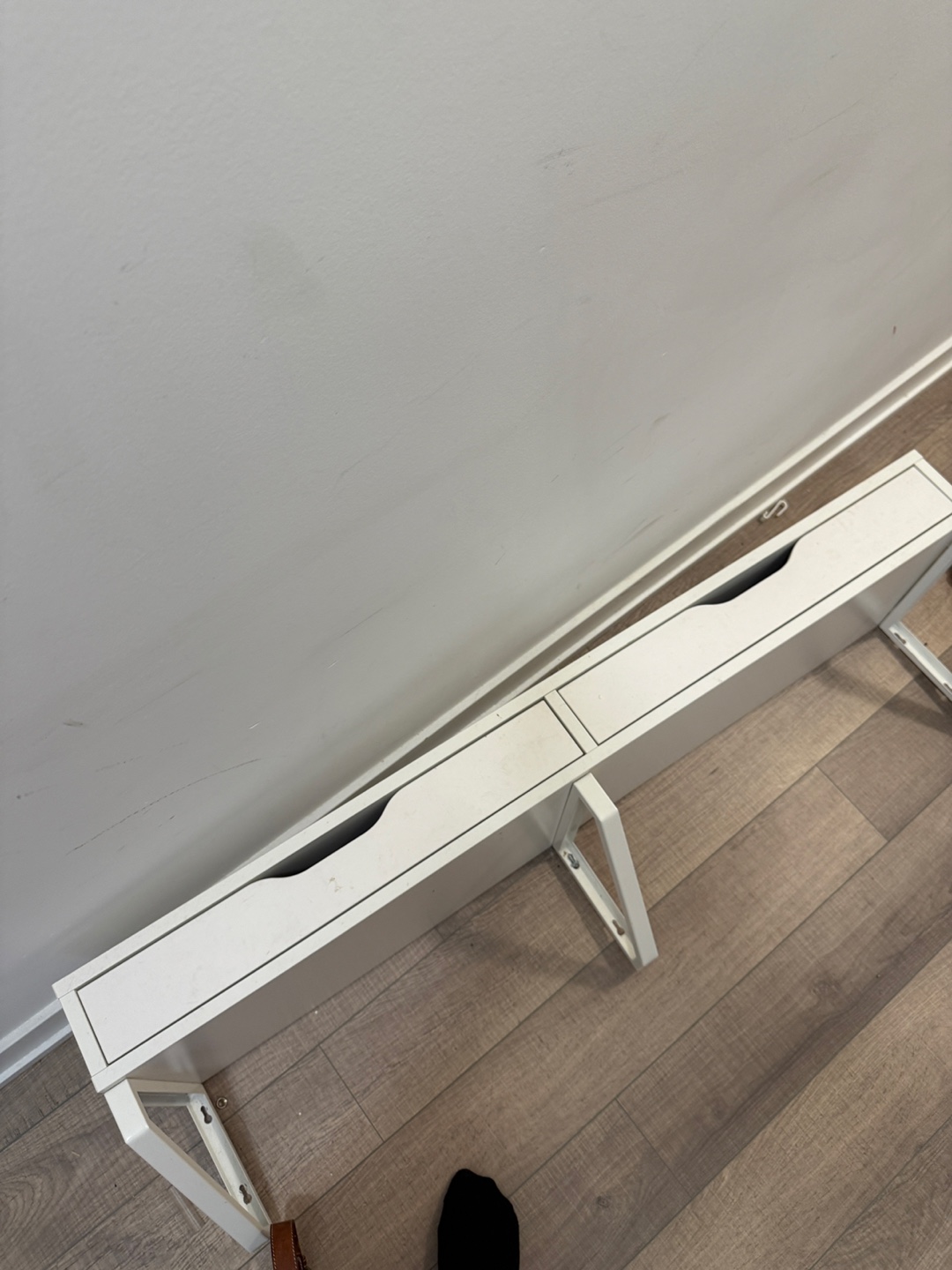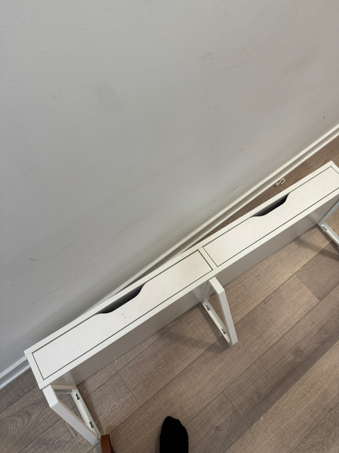 Selling a white Ikea desk/shelf It's in good condition and perfect for a small workspace or student. It has two drawers for storage