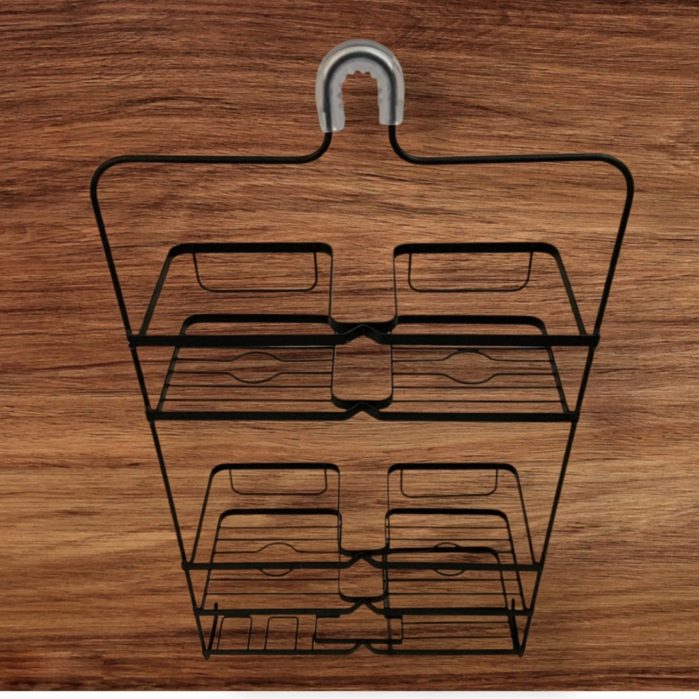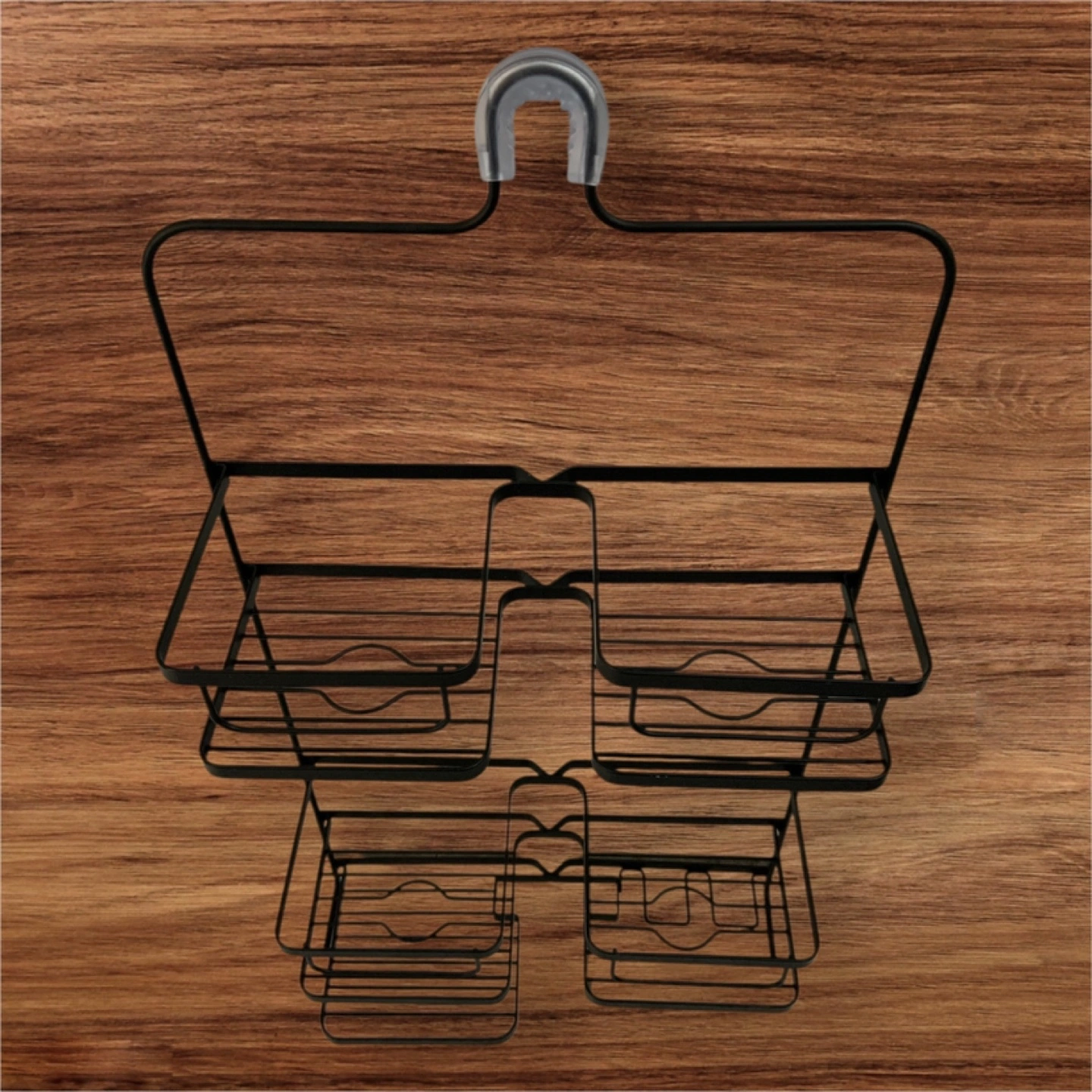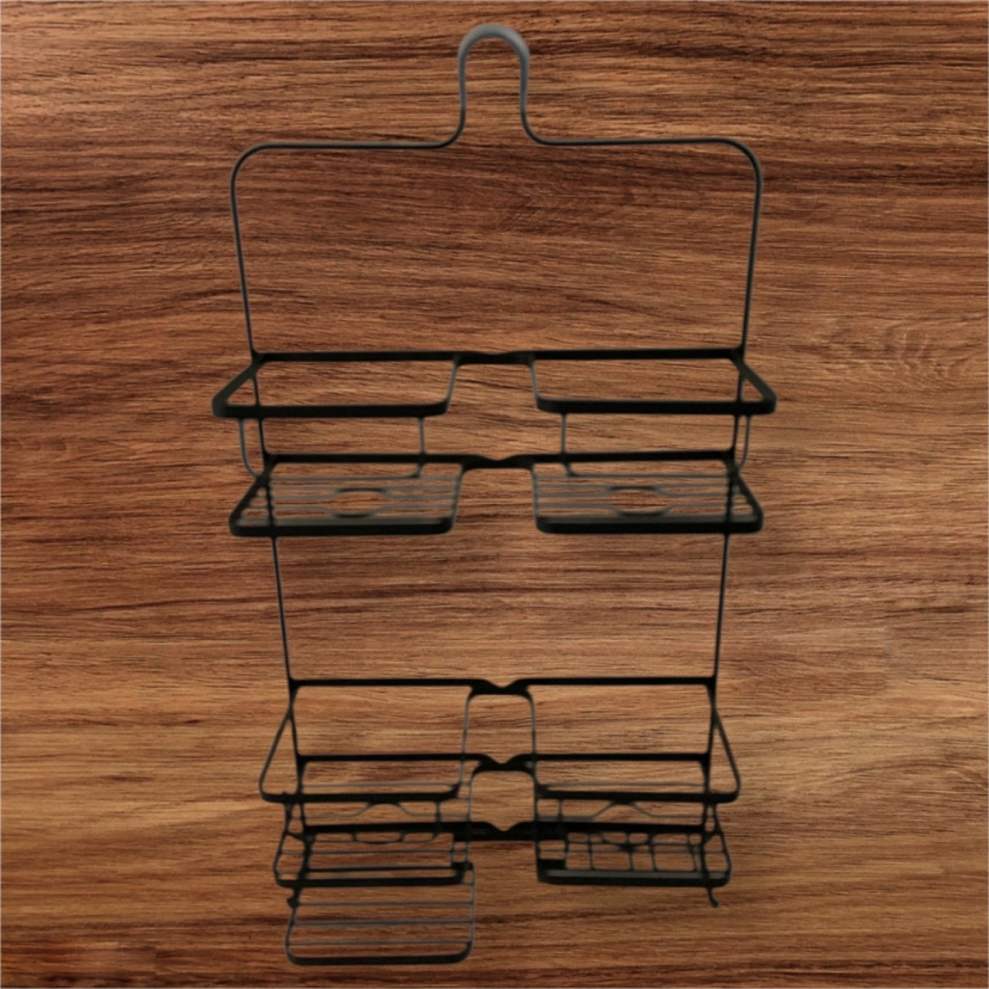 Here's a handy shower caddy to keep your essentials organized! It's made of black metal and has multiple tiers for storing shampoo, soap, and more. Brand New Metal Hanging Shower Caddy