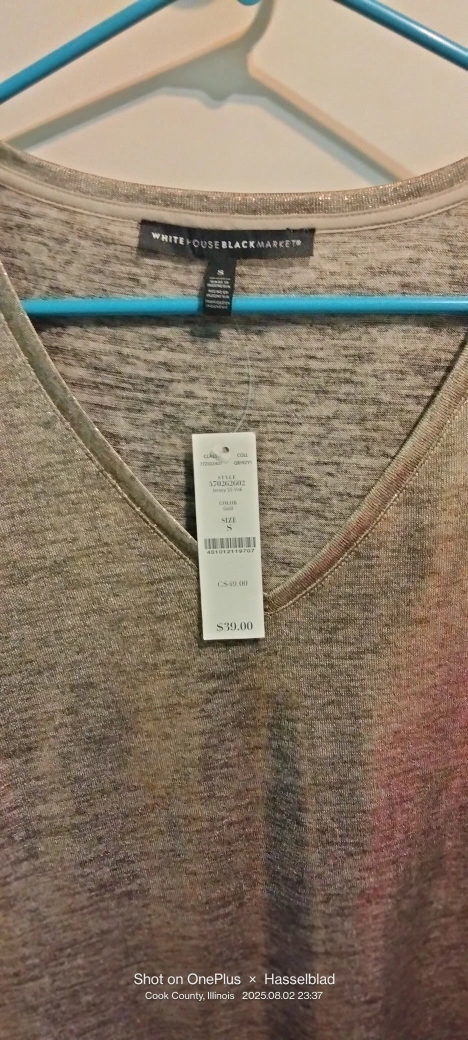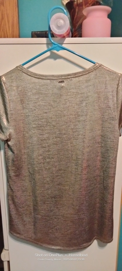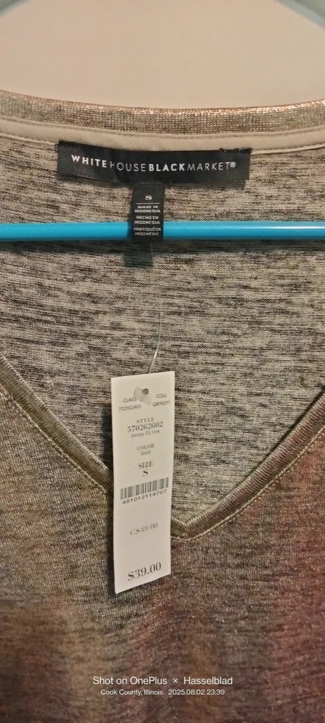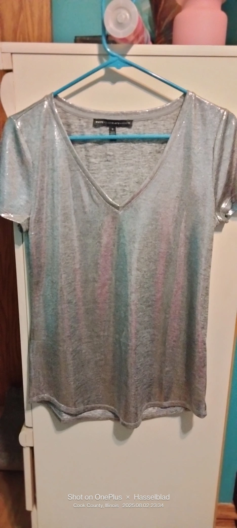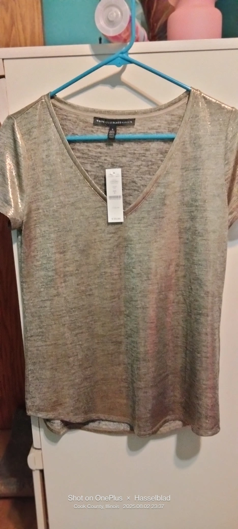 This is a shimmery V-neck top from White House Black Market in size small but fits like M.It's in great condition and originally retailed for $39! I have two different colors gold and silver both new one no tag. Two for $ 20
