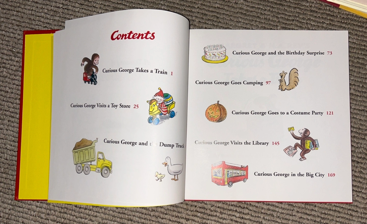 Selling a copy of "A Treasury of Curious George" by Margret and H.A. Rey! 8 in 1, this book features a collection of stories about Curious George, including "Curious George Takes a Train", "Curious George Visits a Toy Store", and "Curious George Goes Camping". I’m very good condition!