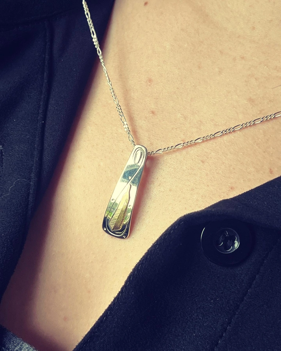 Brand new pendant made here in Vancouver by hand(; I have been engraving for 24 years now and still love what I do!!! I hope it shows in my wearable art!! Good luck(;