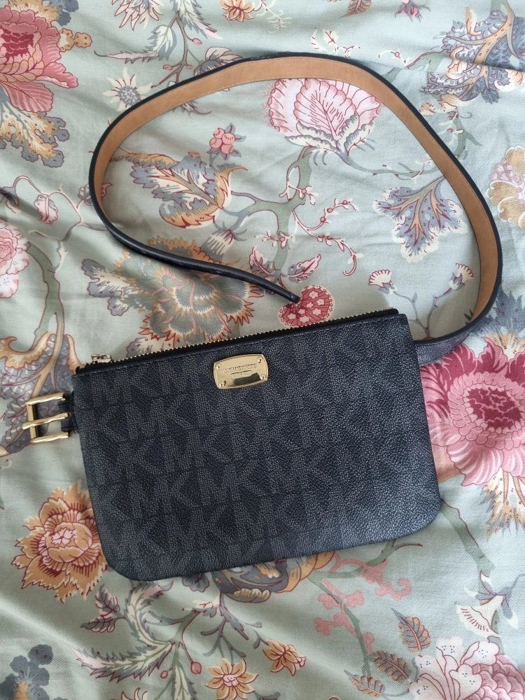 This is a Michael Kors belt bag in great condition! It's a stylish and practical accessory to keep your essentials close and your hands free. Perfect for adding a touch of elegance to any outfit! Ive never worn it but there is slight wear on the side of the strap (as shown in the pics, not really visible when one wears it)- thats why I am pricing it cheaper. Otherwise in perfect condition. Cash only please 😊 willing to give the gold tone drop earrings from my page or the jade roller for free when you purchase this.