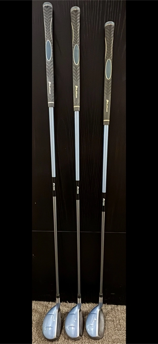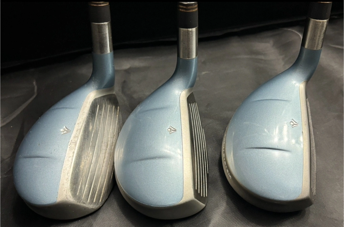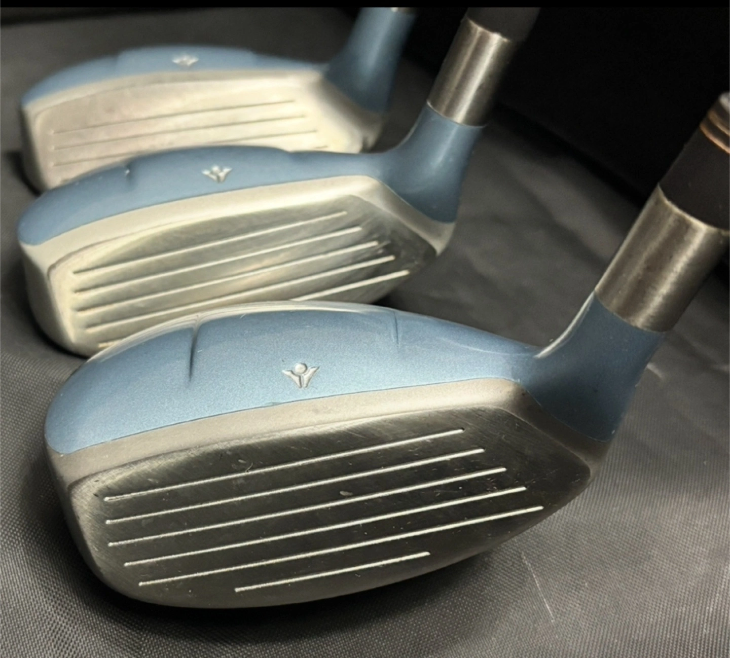 SOLD!! - Near-new condition, beautiful set of three women’s clubs RH. Pale-blue/grey. The 4&5 are 34.5” and practically new barely used, the 8 is 33” and only shows slight sign of wear. Even the grips are in fantastic shape. These are the Iron Replacement System clubs, like hybrid. Mint condition.