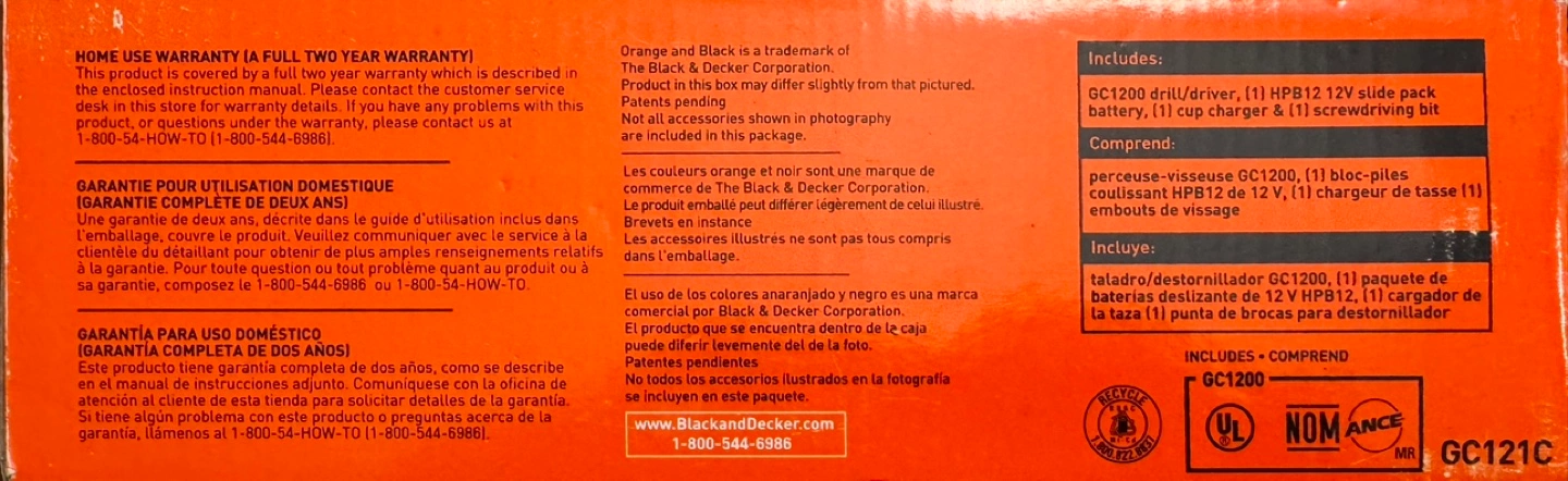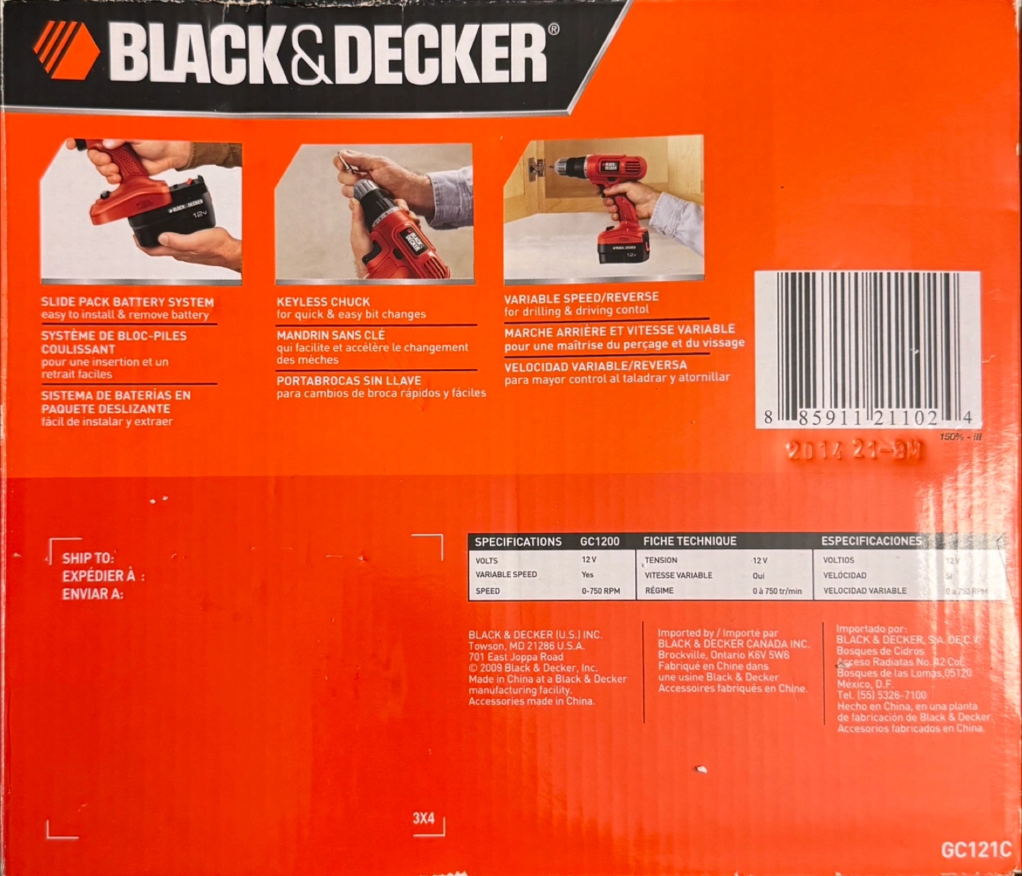 Black & Decker 12V Cordless Drill/Driver - GC121C
