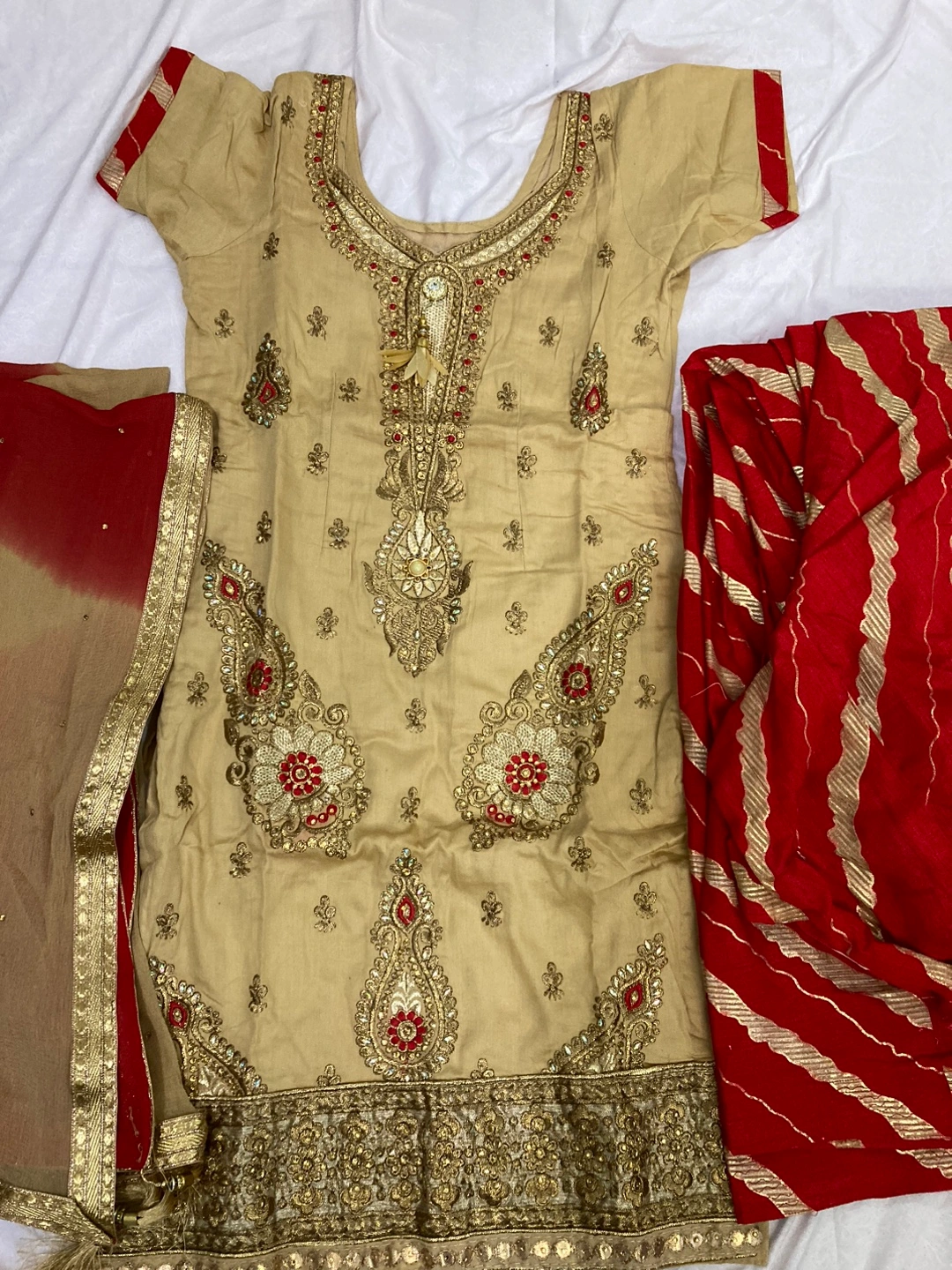 Selling a salwar kameez suit. It features intricate embroidery and a beautiful color combination. Perfect for special occasions!