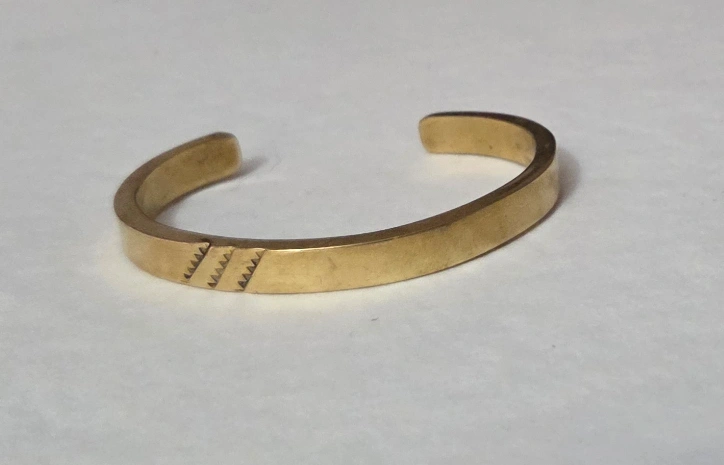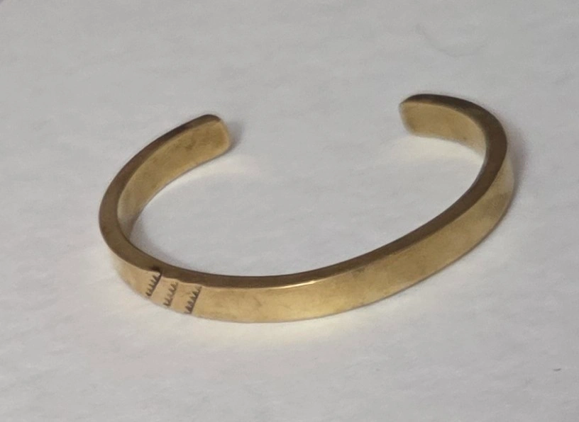 Selling a vintage bronze cuff bracelet. It's for a smaller / medium size wrist. It has a minimalist design with a few etched lines on one side. It is in good condition and ready for a new owner