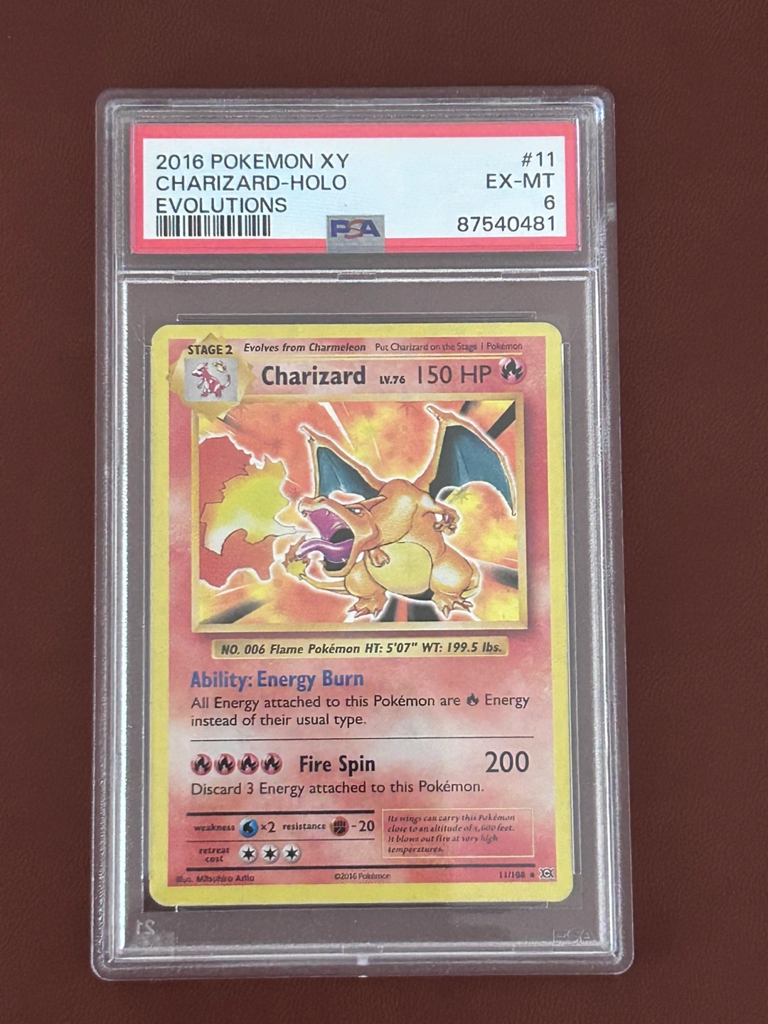 Selling a PSA graded Charizard Holo Pokemon card. It's a 2016 Pokemon XY Evolutions card, graded EX-MT 6. A great addition to any collection!