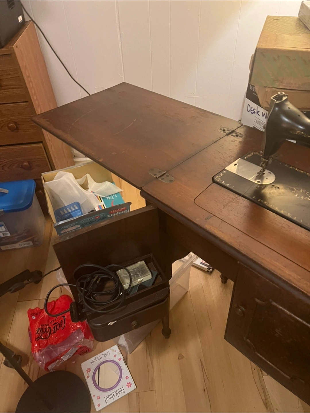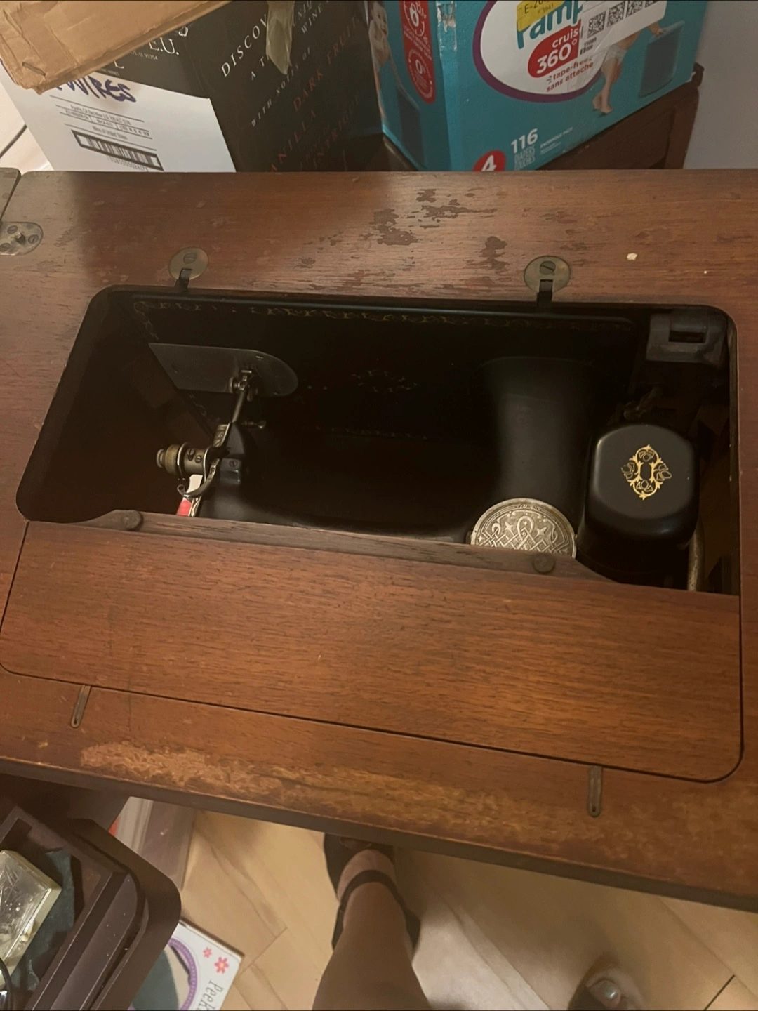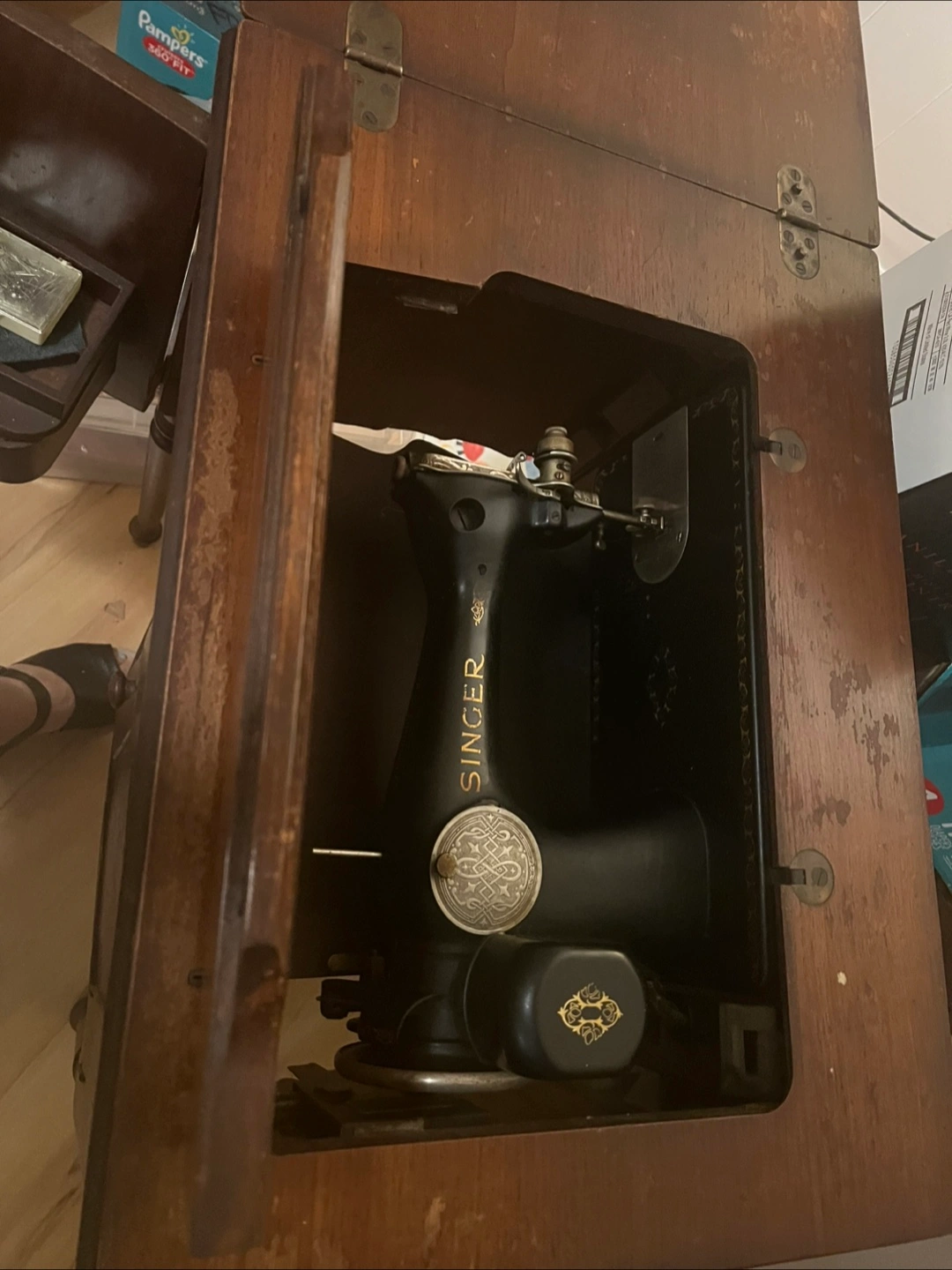 Selling a vintage Singer sewing machine. It's in great working condition, with some wear and tear as shown in the photos. Great for collectors or those interested in vintage sewing machines!