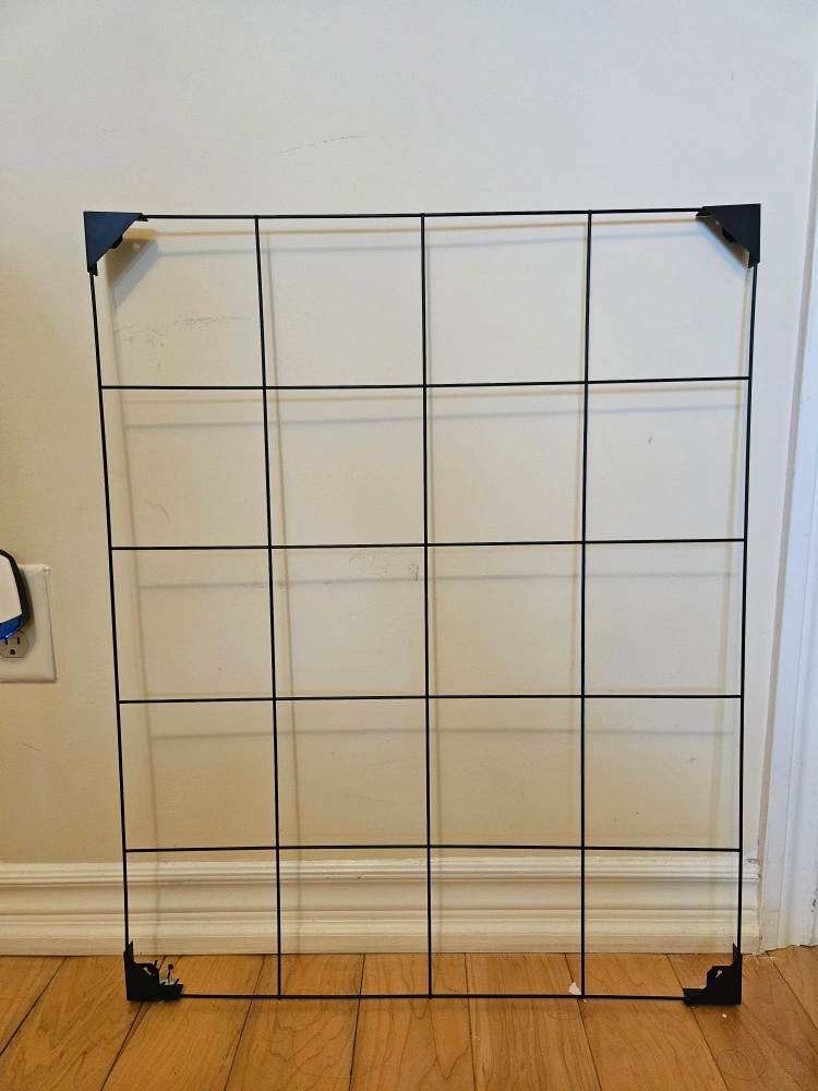 Selling a black wire grid panel! It's in good condition and ready to be used for organizing or displaying items. Perfect for a dorm room, office, or craft space