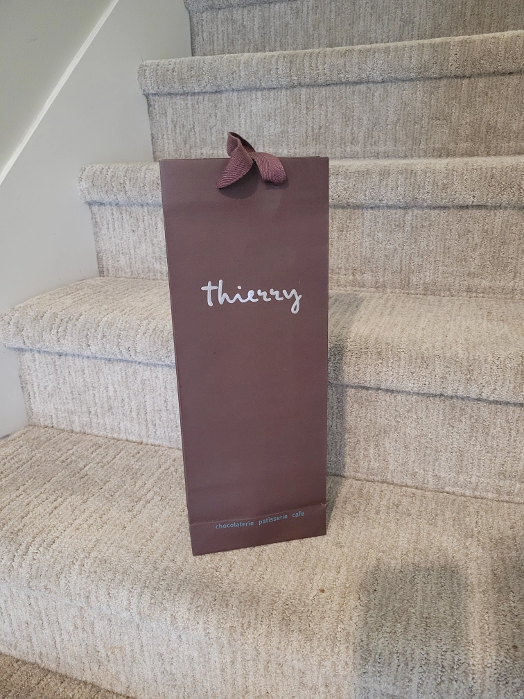 A lovely gift bag from Thierry Chocolaterie Patisserie Cafe! Perfect for presenting a small gift or carrying treats from this popular chocolatier
