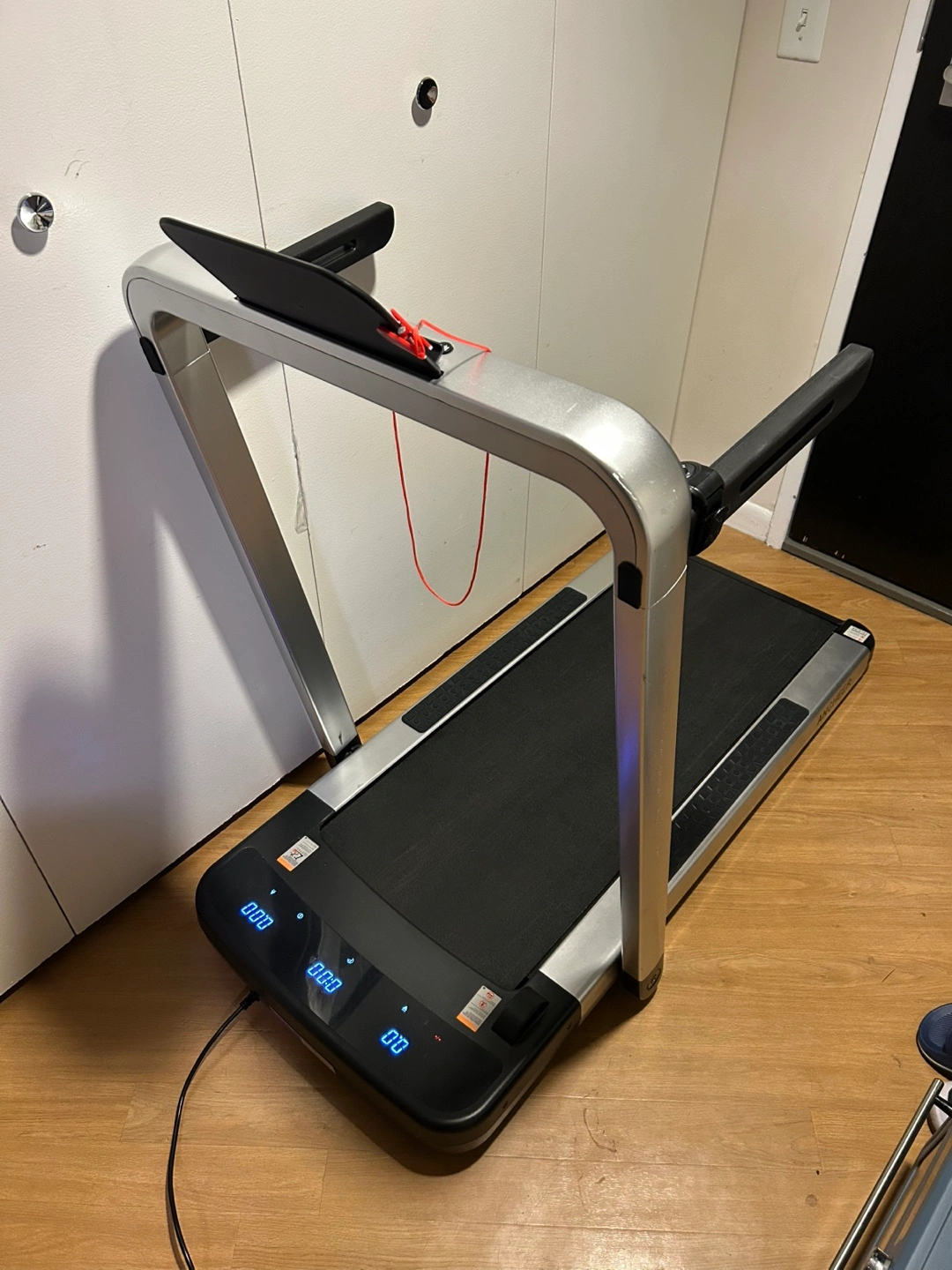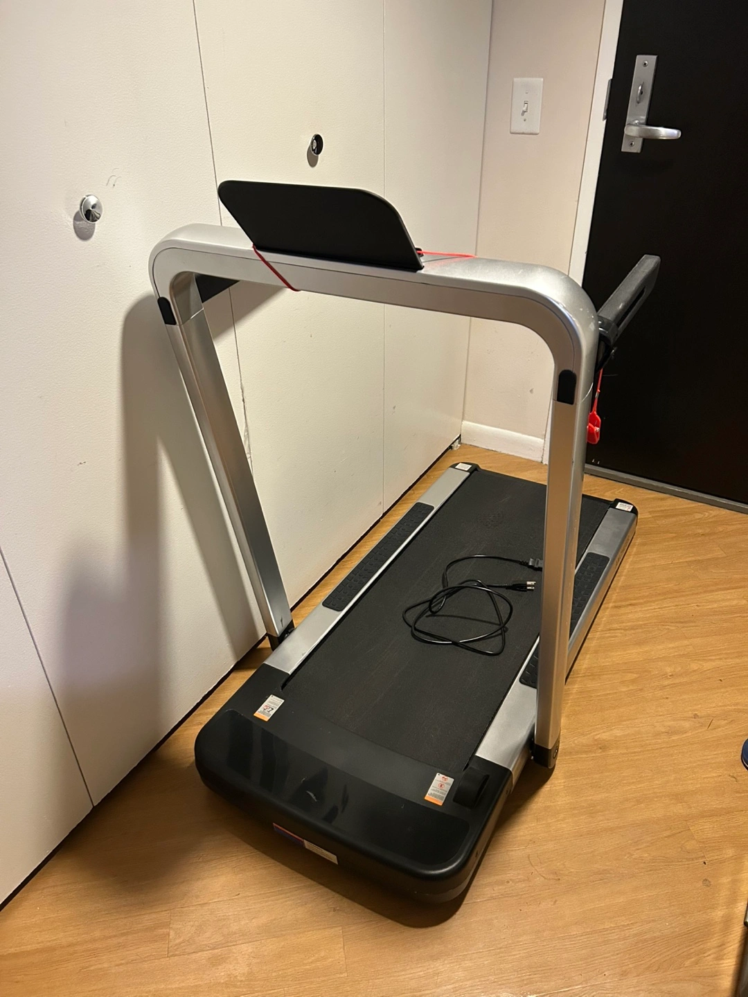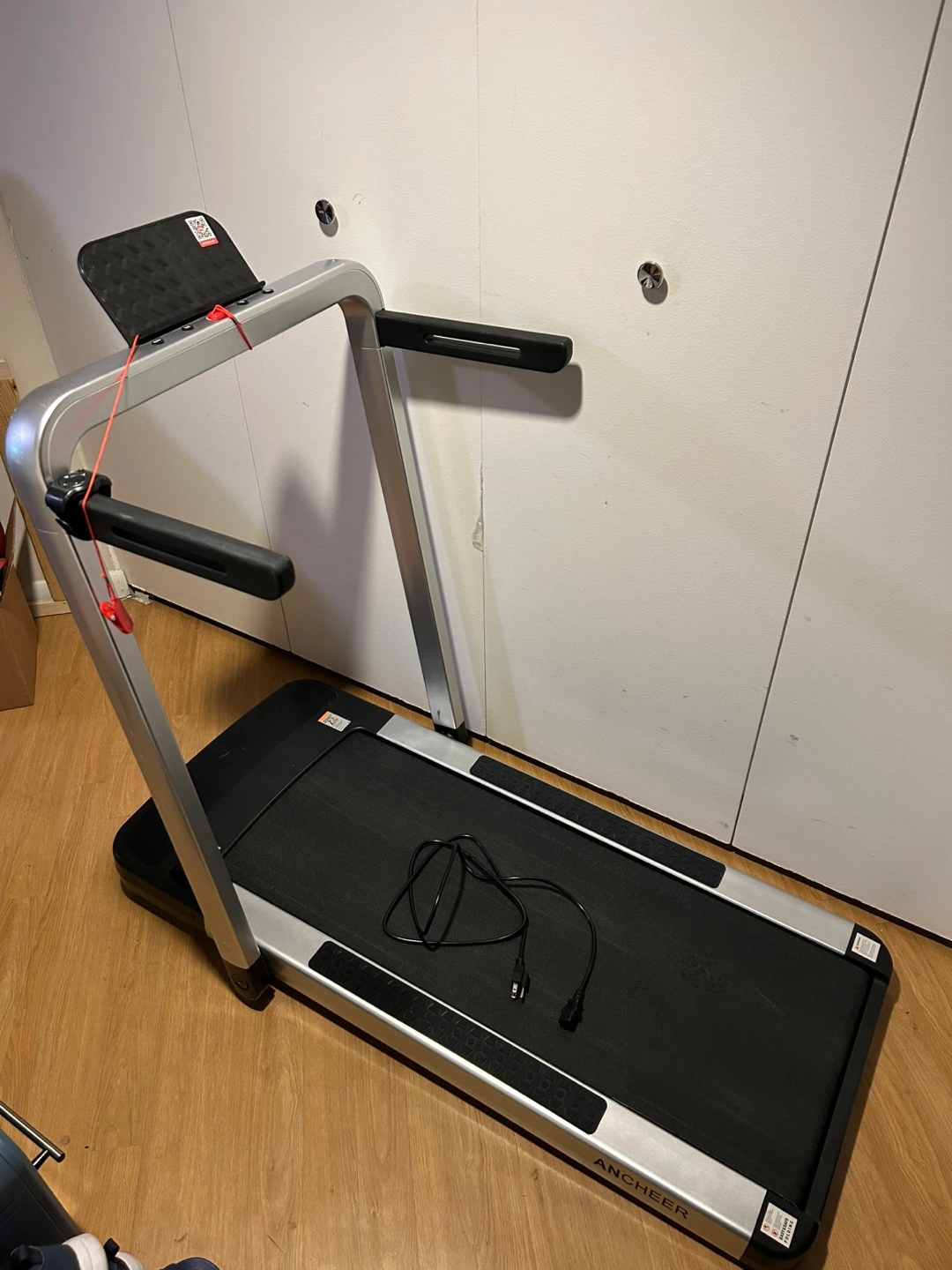 Selling an Ancheer folding treadmill. It's in good condition and folds up for easy storage! Perfect for getting your steps in at home.