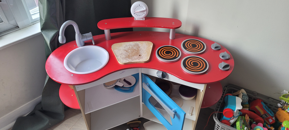 Selling a cute Imari kids play kitchen! It's in great shape and ready for a new little chef. Features a sink, stovetop, oven, and even a little clock. Perfect for hours of imaginative play!