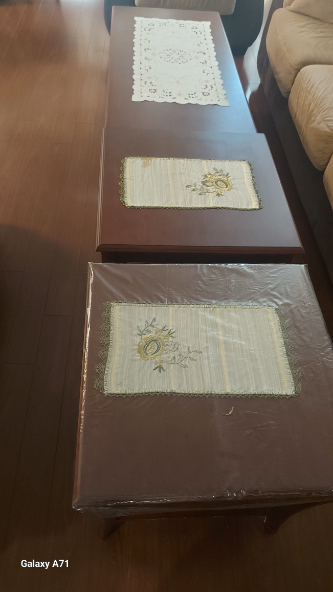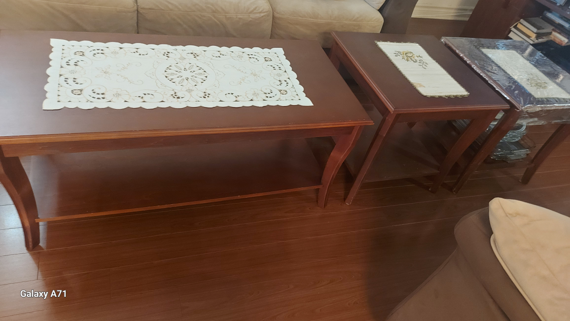 Selling a coffee table and two end tables. They're in good condition and would look great in any living room . $50 each one an Cash Deal . The big table 41L 18 H 20 w. Small one 20 L 20 W 18 H .