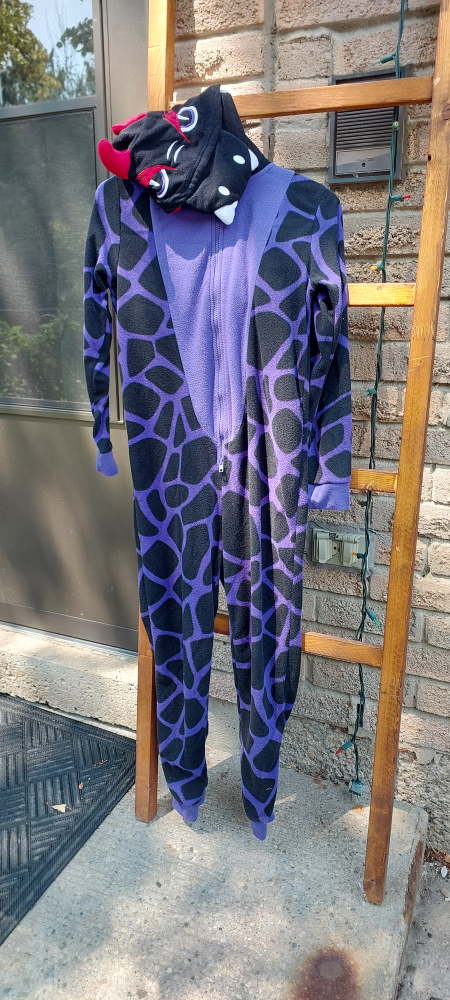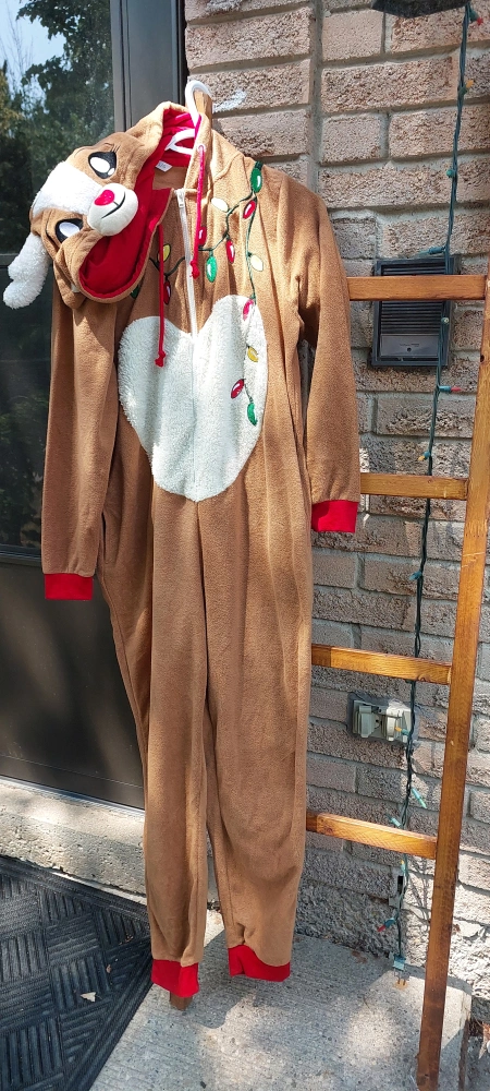 Selling two adorable costume onesies! One is a cute reindeer design with a fluffy white belly and festive Christmas lights. The other is a fun purple and black devil costume. Both are in great condition and perfect for dress-up or cozy nights. Both were used once only.