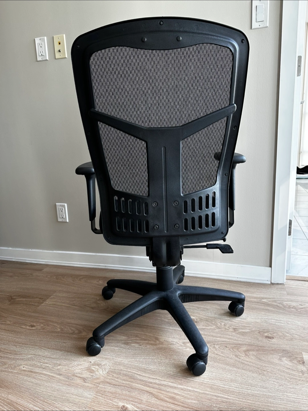 Selling a black office chair in great condition! It features a mesh back for breathability and adjustable armrests for comfort. Perfect for your home office or study space.