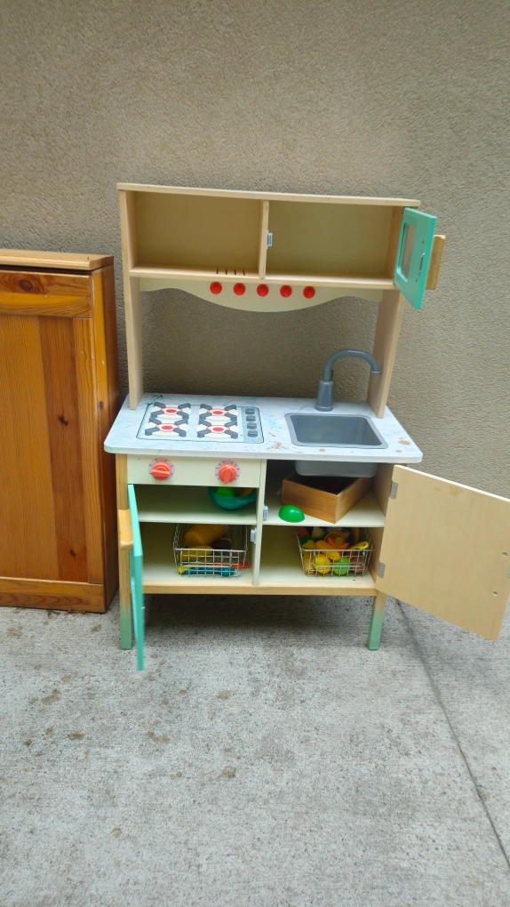 Selling a cute wooden play kitchen! It comes with lots of fun accessories to inspire your little chef's imagination. Perfect for hours of creative play!