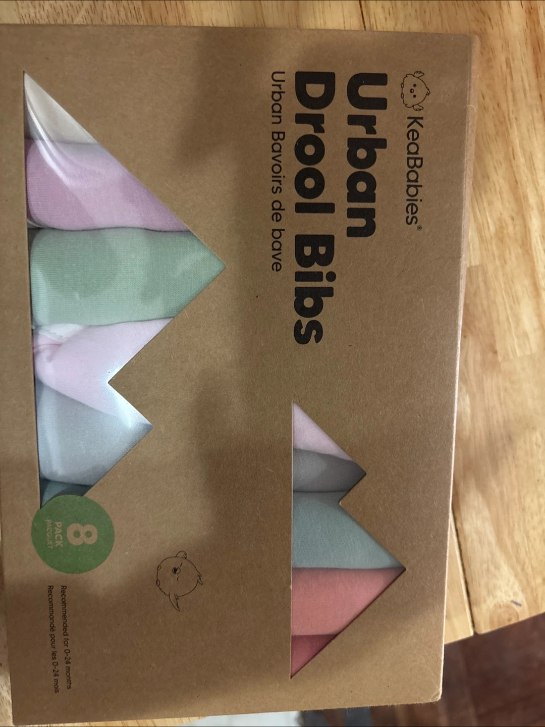 Brand new set of KeaBabies Urban Drool Bibs! This is an 8-pack of super absorbent bibs, perfect for babies aged 0-24 months. They're great for catching drool and keeping your little one clean and dry. The box is included!
