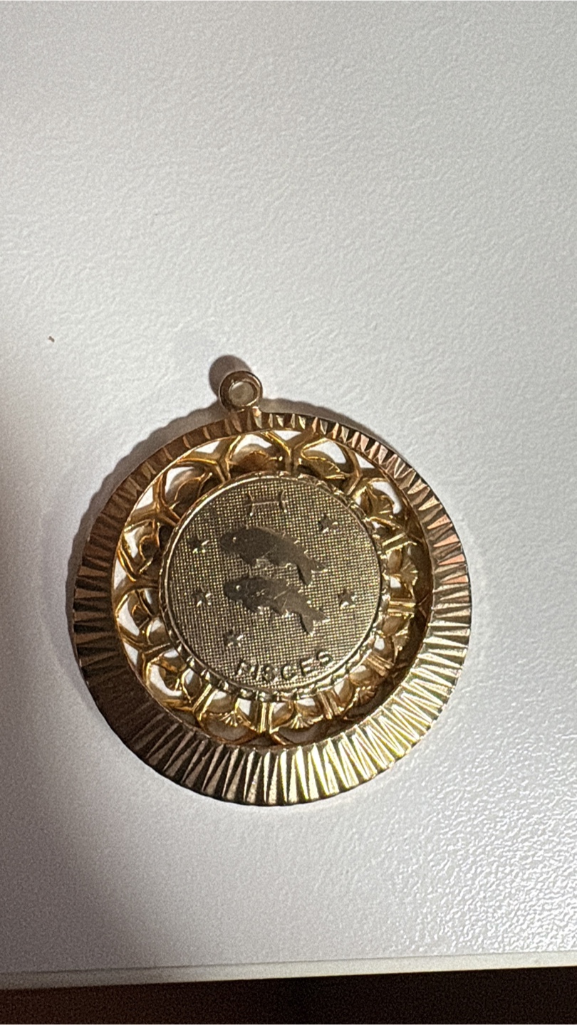 Buy & SellVintage Gold Plated Pisces Zodiac PendantVintage Gold Plated Pisces Zodiac Pendant$20Selling a vintage gold-tone pendant featuring the Pisces zodiac sign. It has a unique, intricate design. Perfect for anyone who loves astrology or vintage jewelry!BrandVintageWHERE TO MEETCheck LocationView MapSELLERverifiedKatSummerhill1154 reviews0 chats·0 favorites·7 viewsSEND CHAT TO SELLERHi Kat! I’m interested in your listing.Hi Kat! I’m interested in your listing.Get the Karrot app to chatSign In to chat