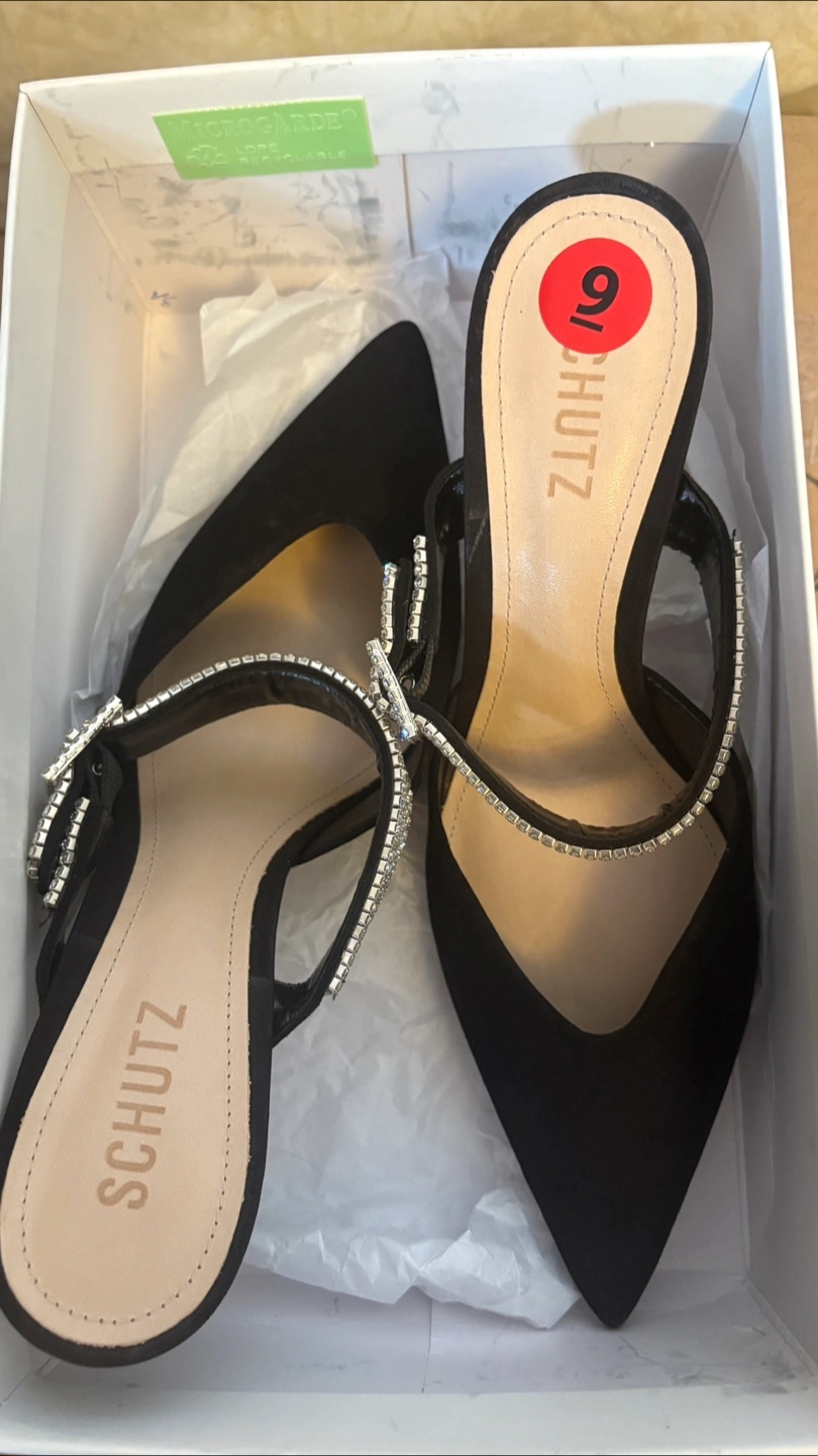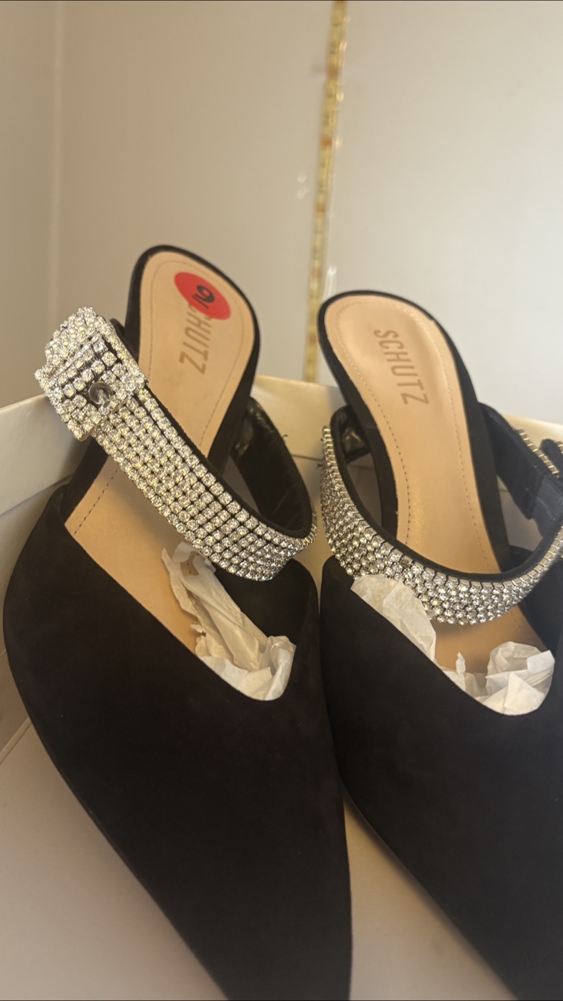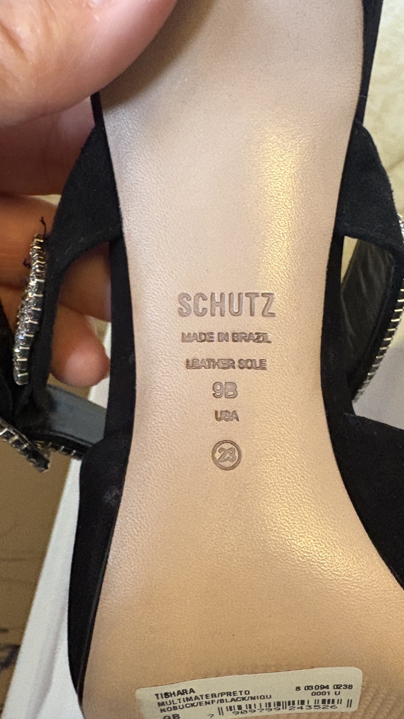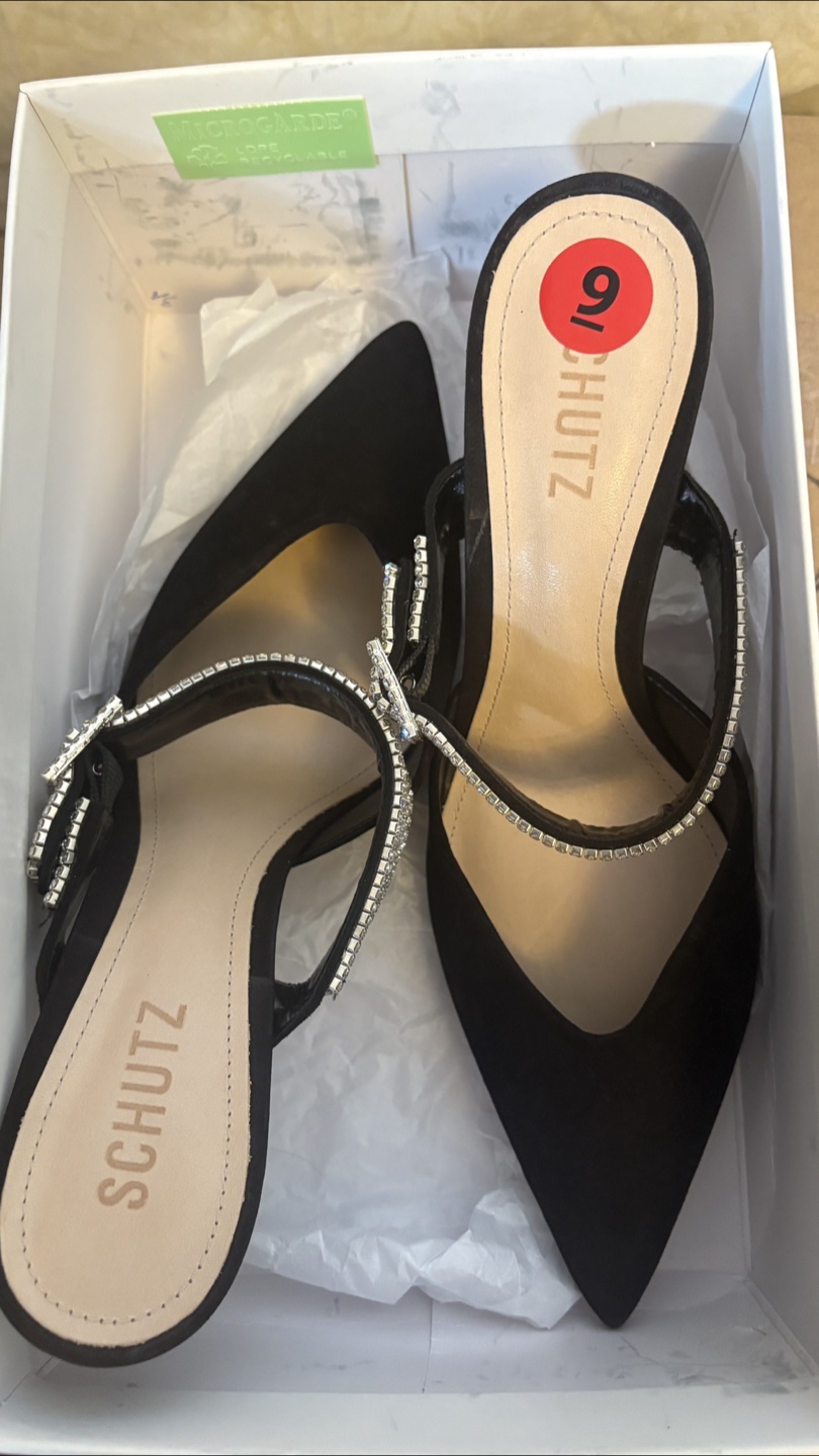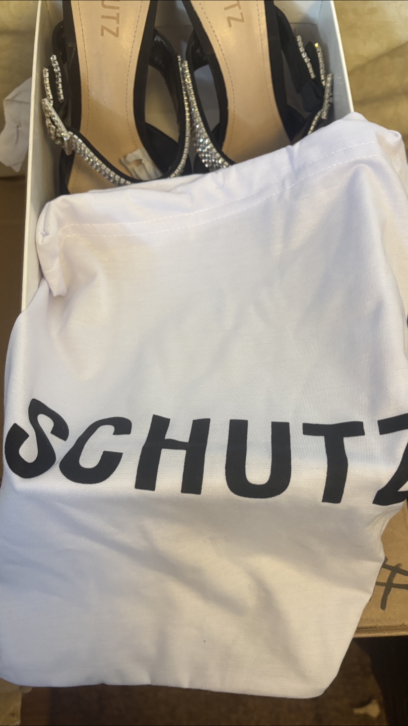 These Schutz Tishara heels are a stunning addition to any wardrobe! They feature a sleek black design with beautiful crystal detailing.