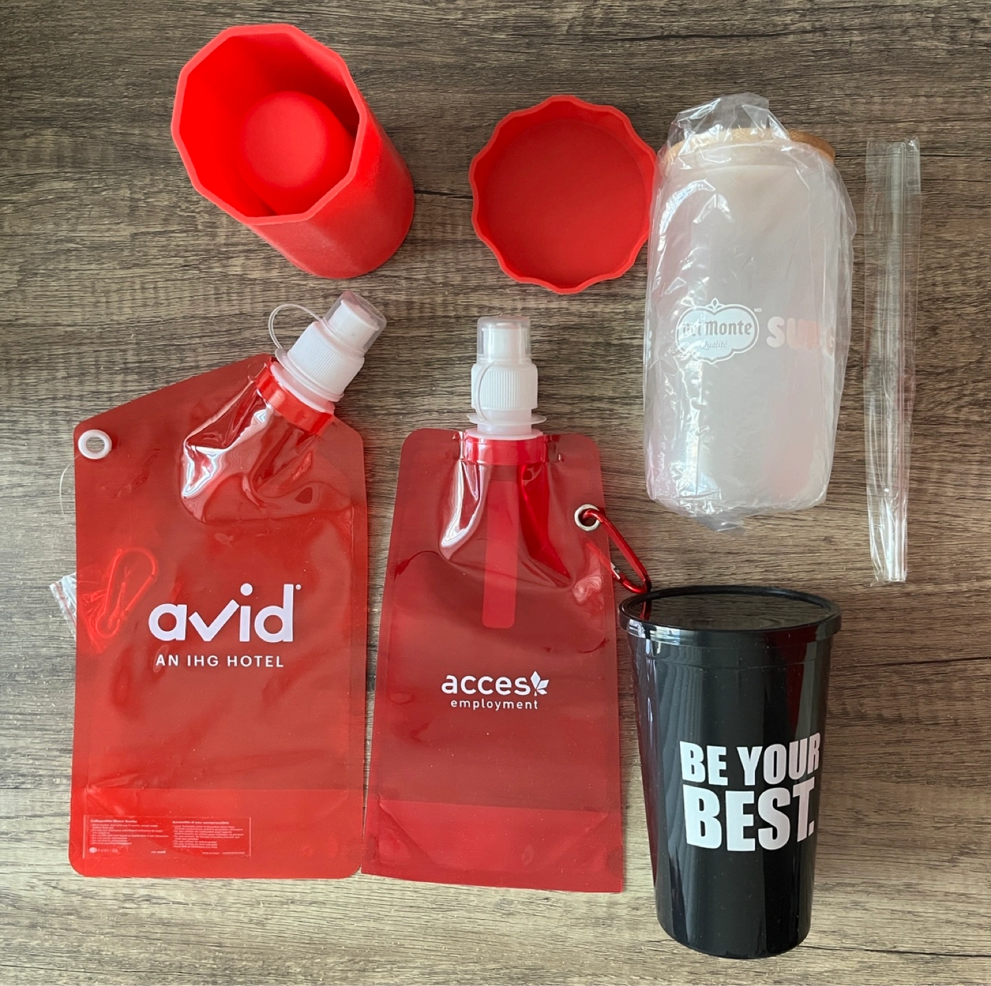 - Red collapsible reusable water bottles: $1 for both