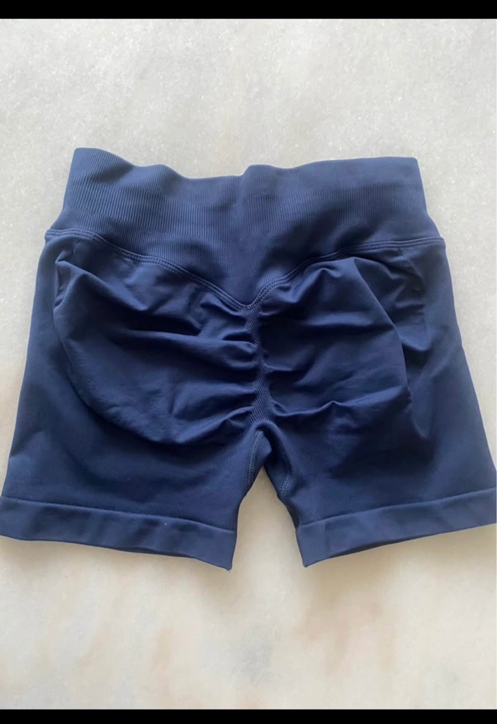 This navy blue athletic shorts is in great condition and ready for your next workout! It features a comfortable, ribbed waistband and a flattering design. Perfect for running, yoga, or just lounging around.