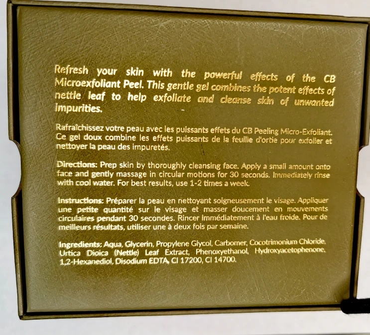 CbGäRDN CB Microexfoliant Peel! This gentle gel combines the powerful effects of nettle leaf to help exfoliate and cleanse skin of unwanted impurities.