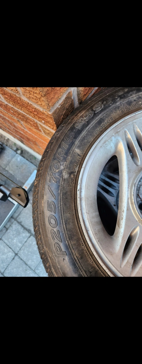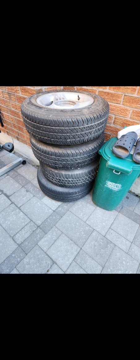 Selling a set of four tires, size P205/70R15. They are mounted on rims with a 5x7x24.0 bolt pattern. Great for someone needing a spare set! off 1989 mustang