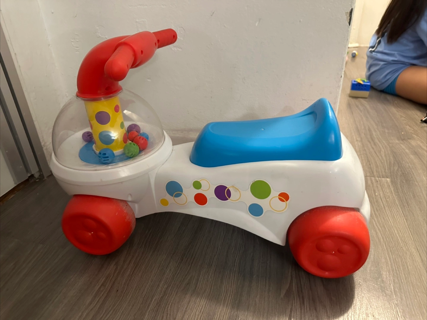 Selling a Fisher-Price Corn Popper Ride-On toy! It's in good used condition and ready for a new home. Features a clear dome with colourful balls that pop as your little one rides along. Great for developing motor skills and providing hours of fun!
