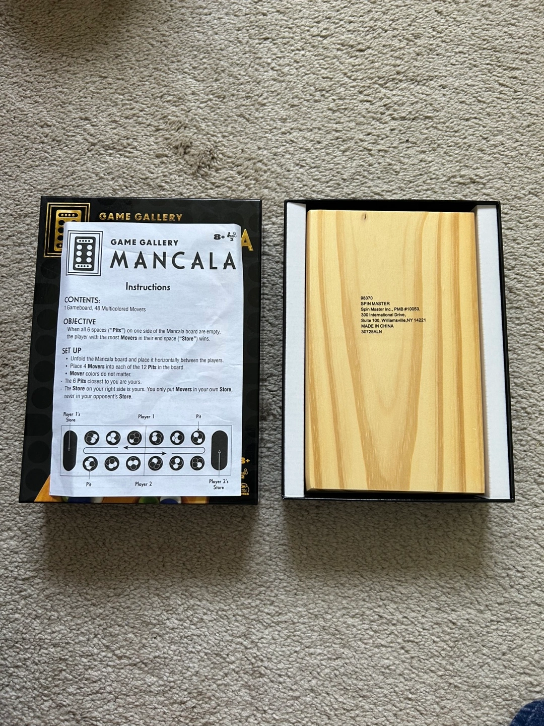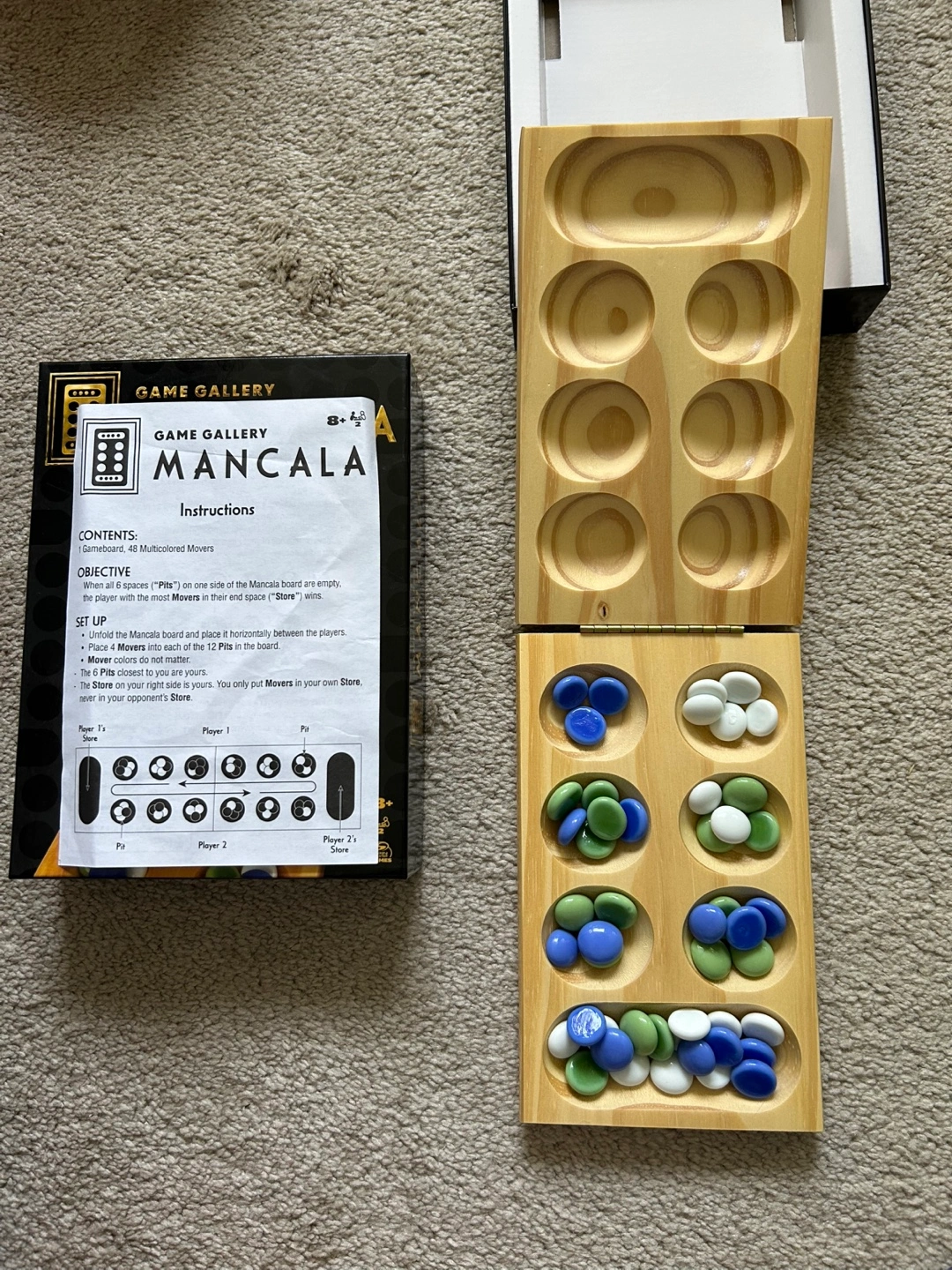 Selling a lightly used Game Gallery Mancala board game! It comes with the original box, game board, and all 48 of the multicolored movers. It's a fun game for ages 8 and up!