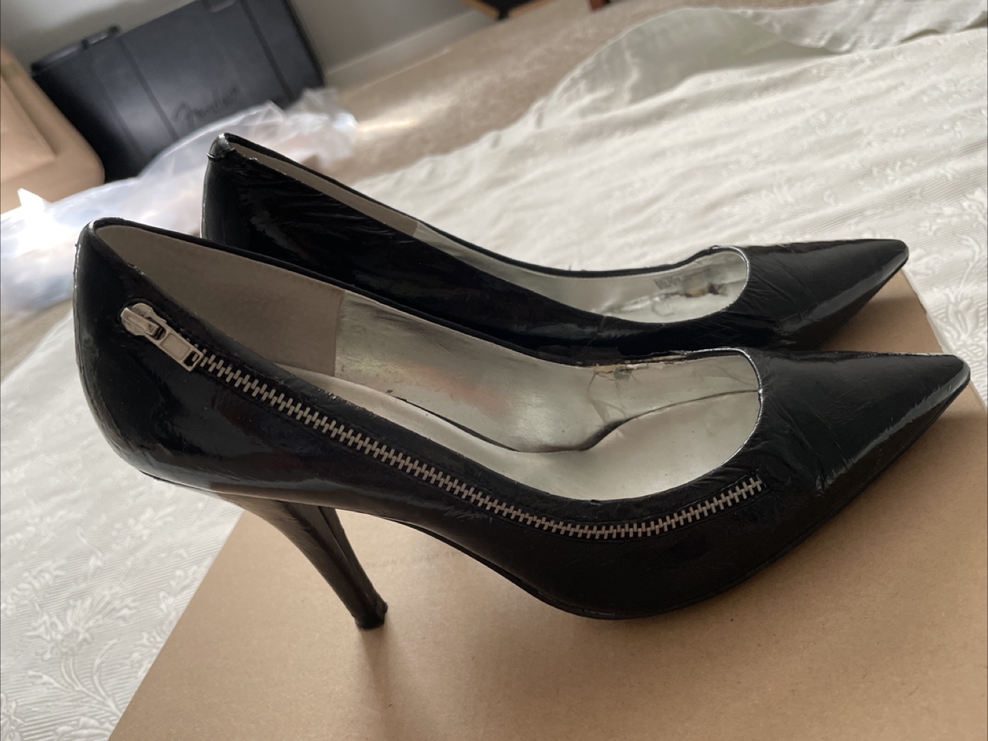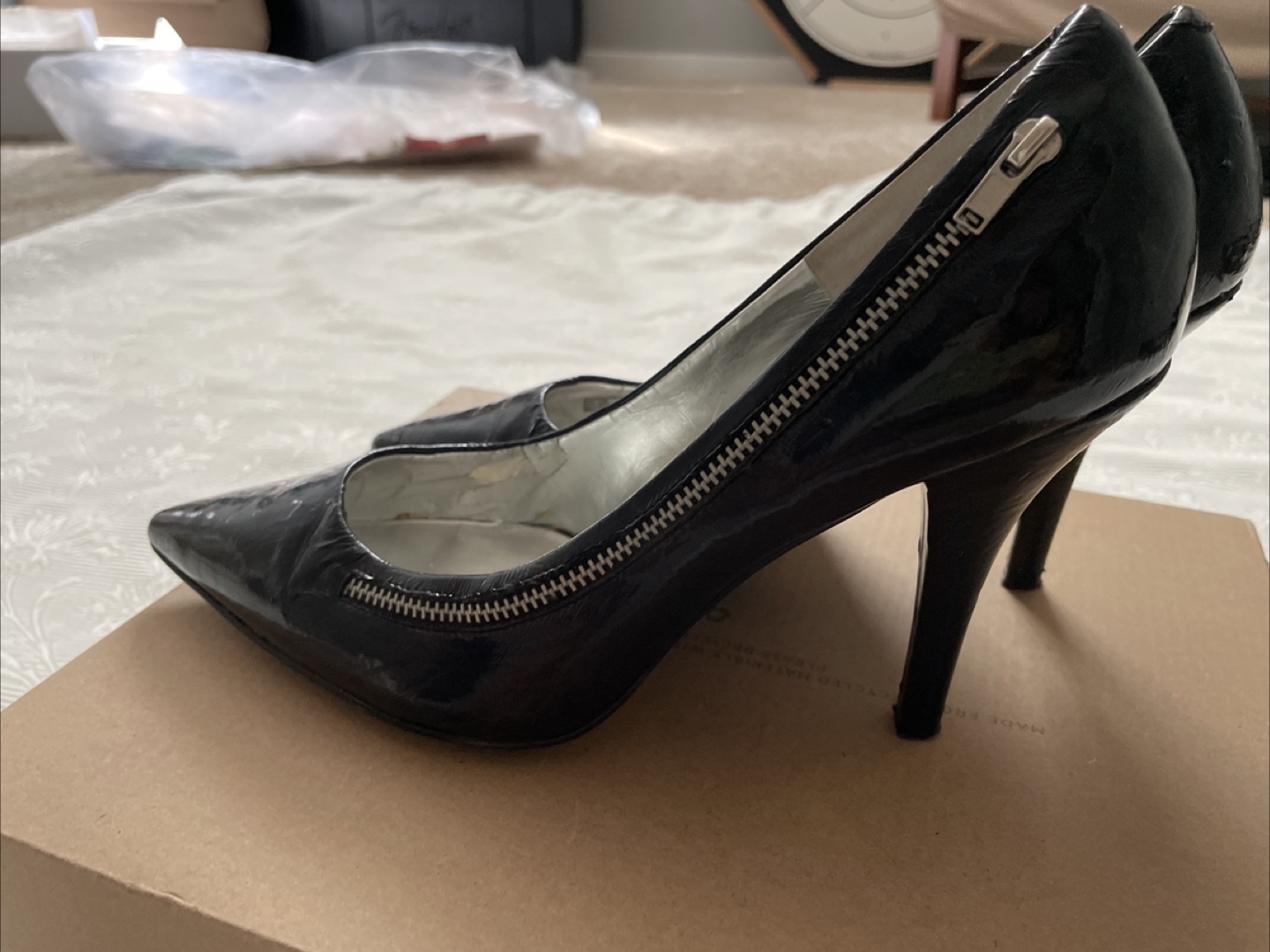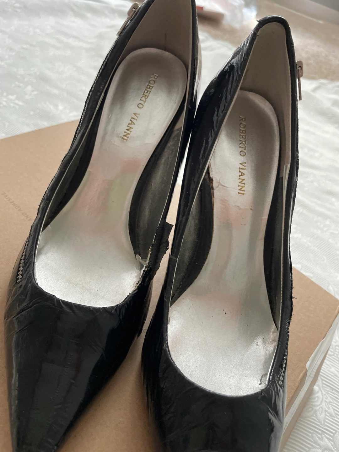 Selling a pair of Roberto Vianni black heels. They feature a unique zipper design and are in good condition. Perfect for adding a bit of edge to your outfit!