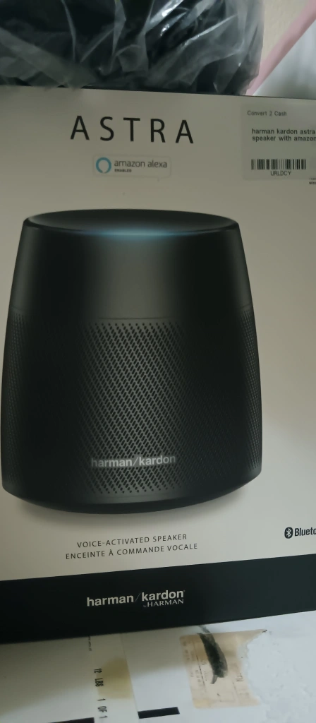 Selling a Harman Kardon Astra voice-activated speaker. It's still in its original box and ready to go! This speaker features Amazon Alexa integration and Bluetooth connectivity for seamless control and audio streaming. Enjoy high-quality sound in a sleek design. ( Used /Great Condition)