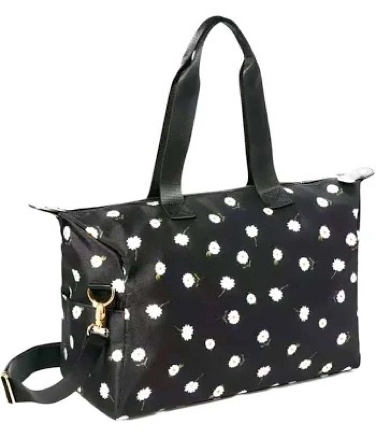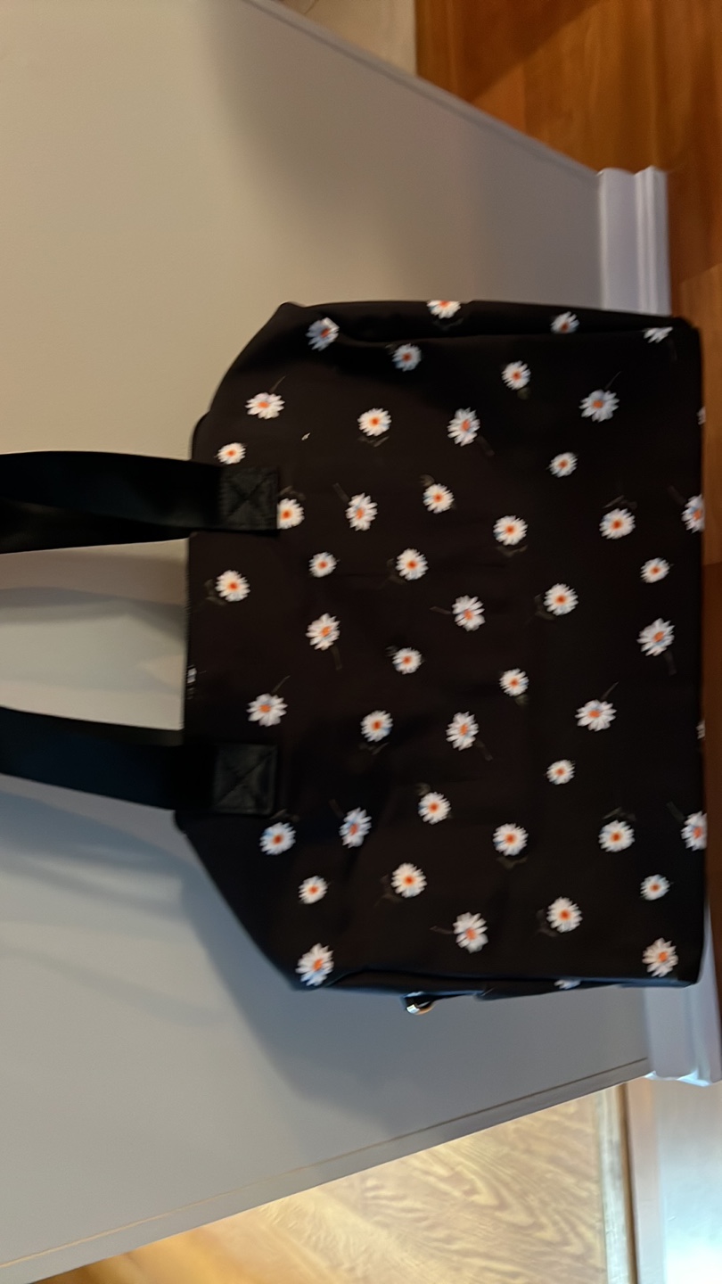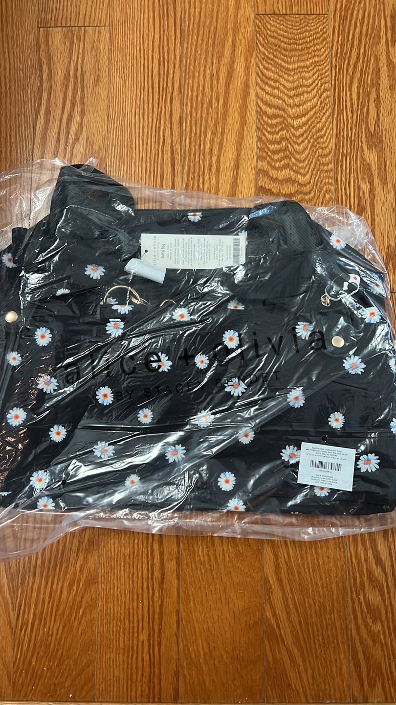 This Alice and Olivia is a cute black daisy pattern! It's perfect for carrying all your essentials, whether you're heading to the gym or going on a weekend getaway. It's lightweight and portable