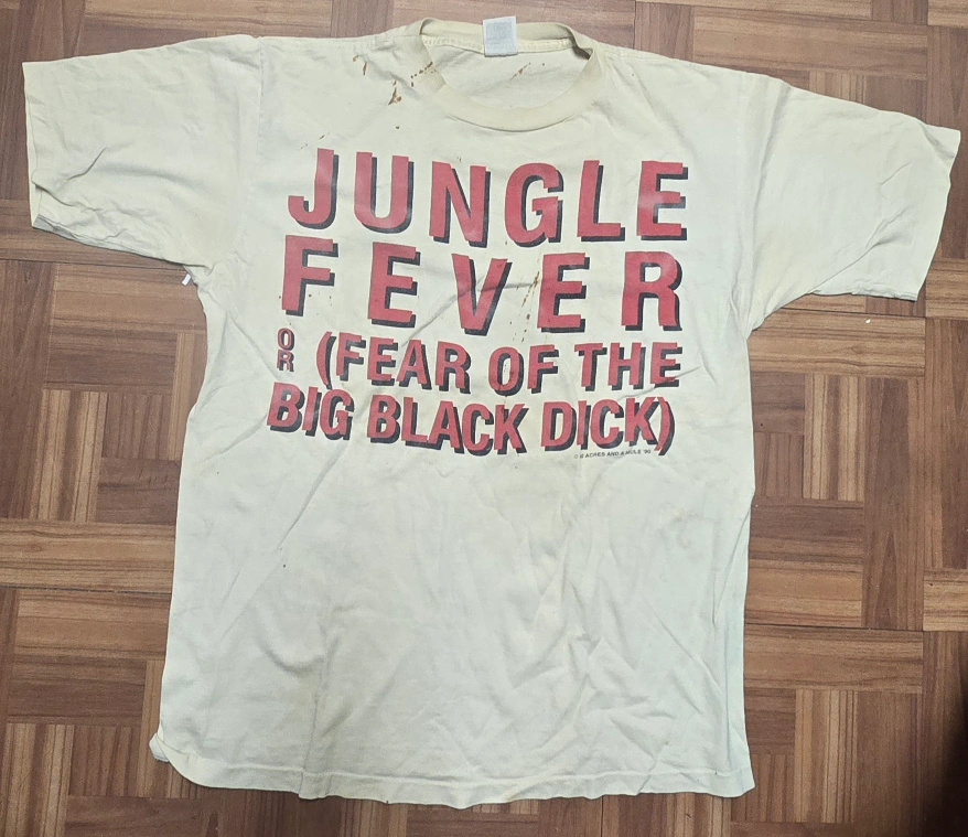 10Ultra rare 1990 vintage Spike Lee Jungle Fever film T Shirt . XL purchased at Spike store when it was on De Kalb Ave in Bk in the early 90's. worn & some stains but you find another one anywhere