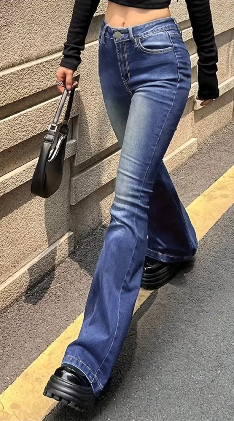 Flare Leg Jeans - Blue Denim