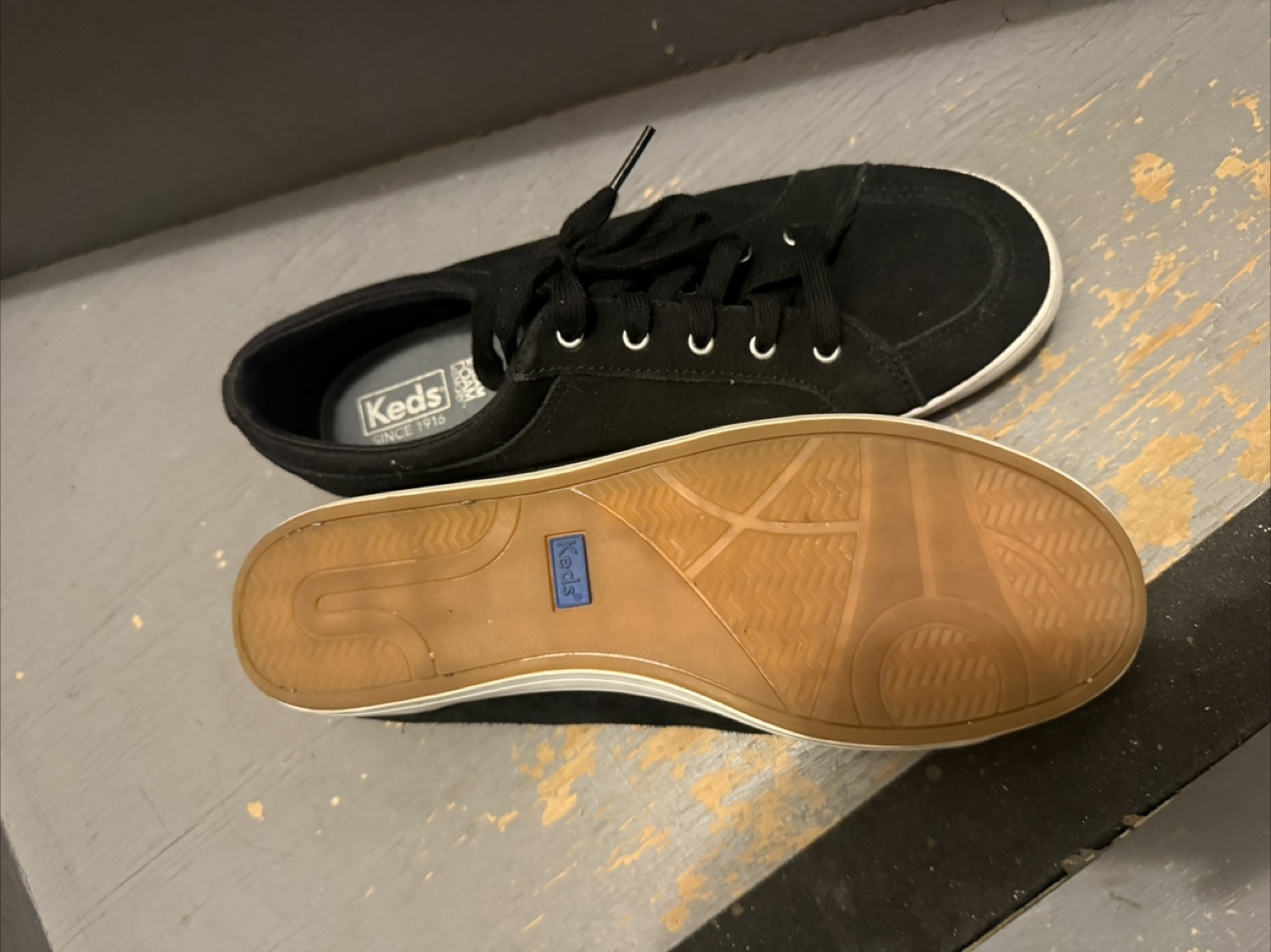 Selling a pair of Keds black sneakers! They are in good condition and ready for a new home. Perfect for everyday wear and super comfy