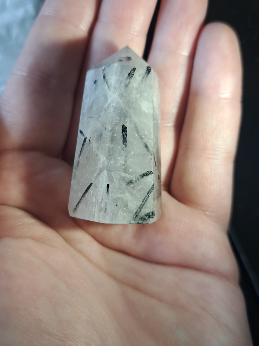 Selling a beautiful tourmalated quartz crystal tower. It features clear quartz with black tourmaline inclusions. A lovely piece for any crystal collection!