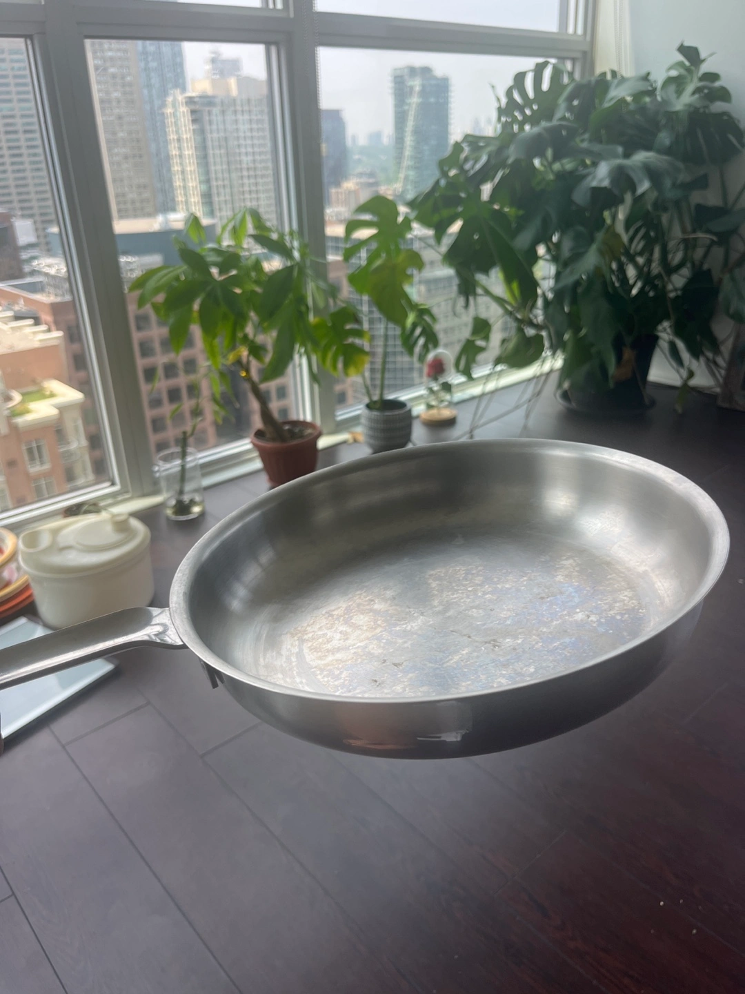 Giving away a stainless steel frying pan. It's in fair condition and ready for a new home.