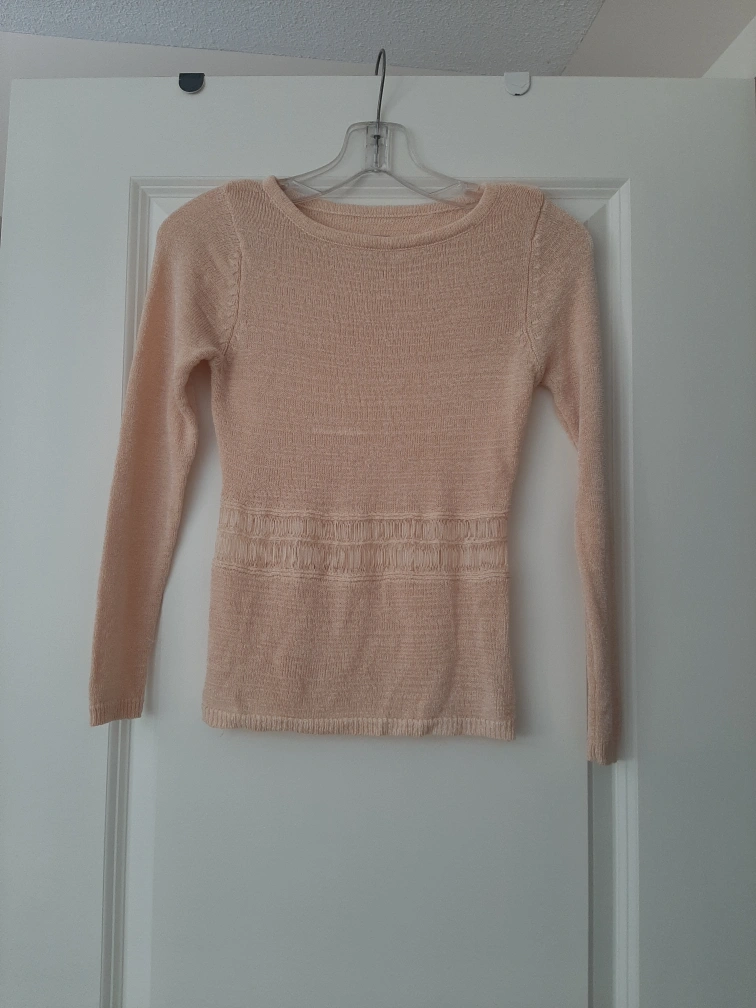 A soft peach-coloured long sleeve top, perfect for layering or wearing on its own! It's in great condition and ready for a new home