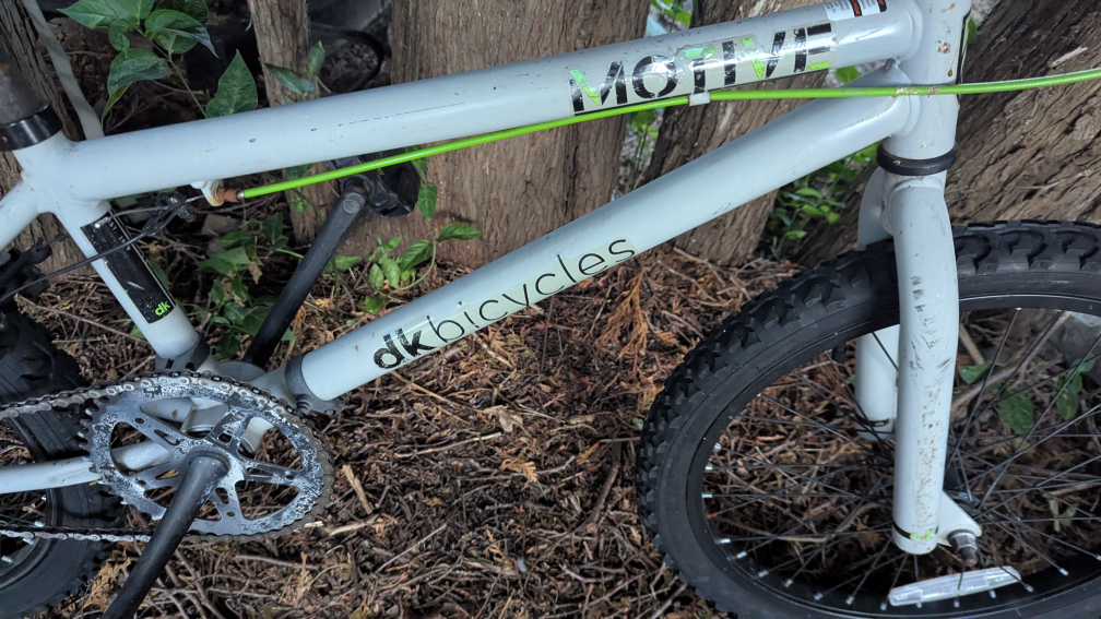 Selling a DK Bicycles Motive BMX bike. It's a great bike for getting around! almost new tires. Some marks on body. Brakes and gear work great! Priced to sell! It's been stored inside.