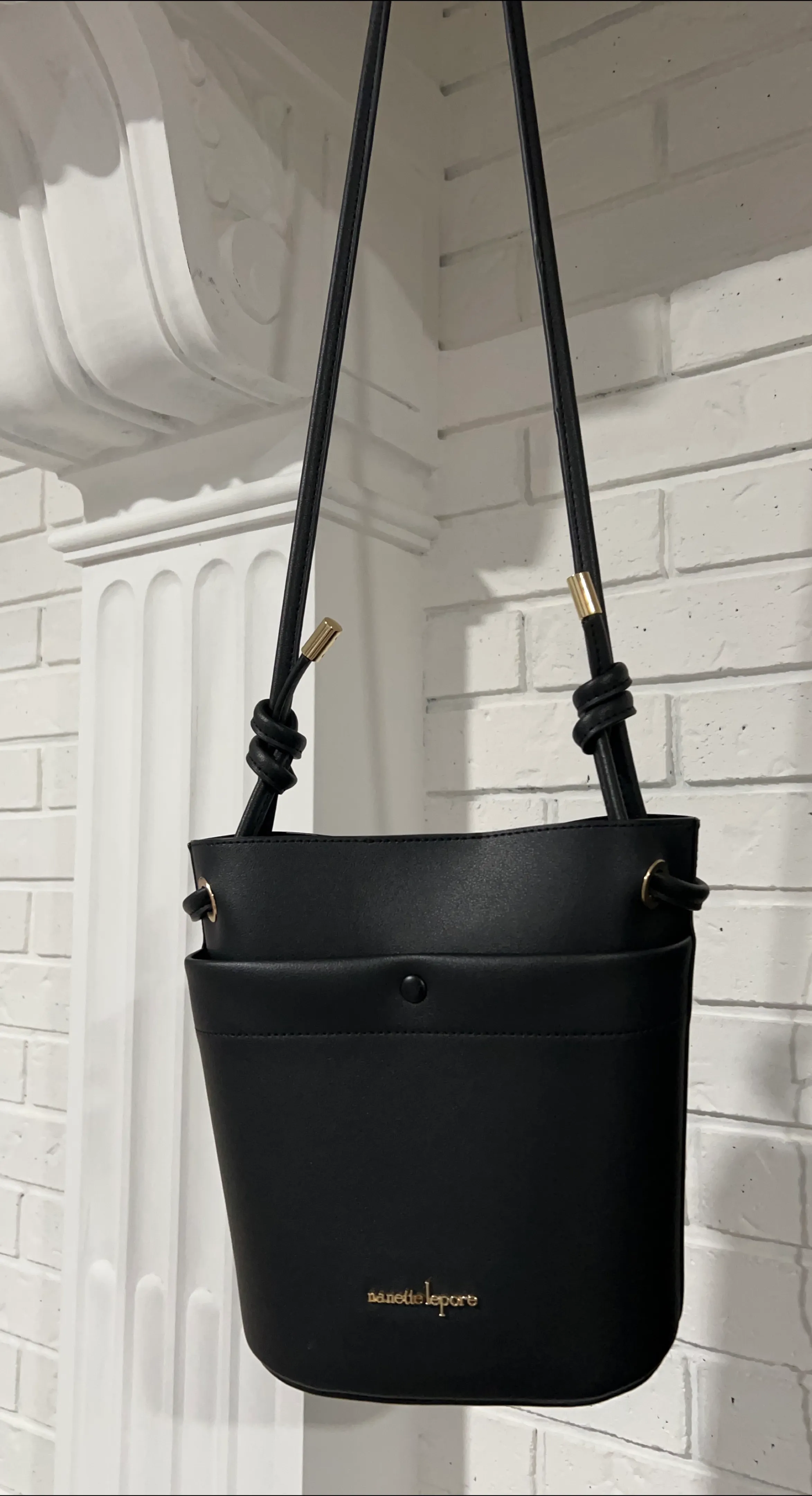 Selling a stylish Nanette Lepore black bucket bag! It's in great condition and perfect for everyday use. The simple design makes it a versatile accessory for any outfit.