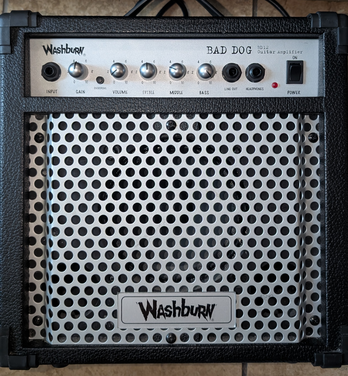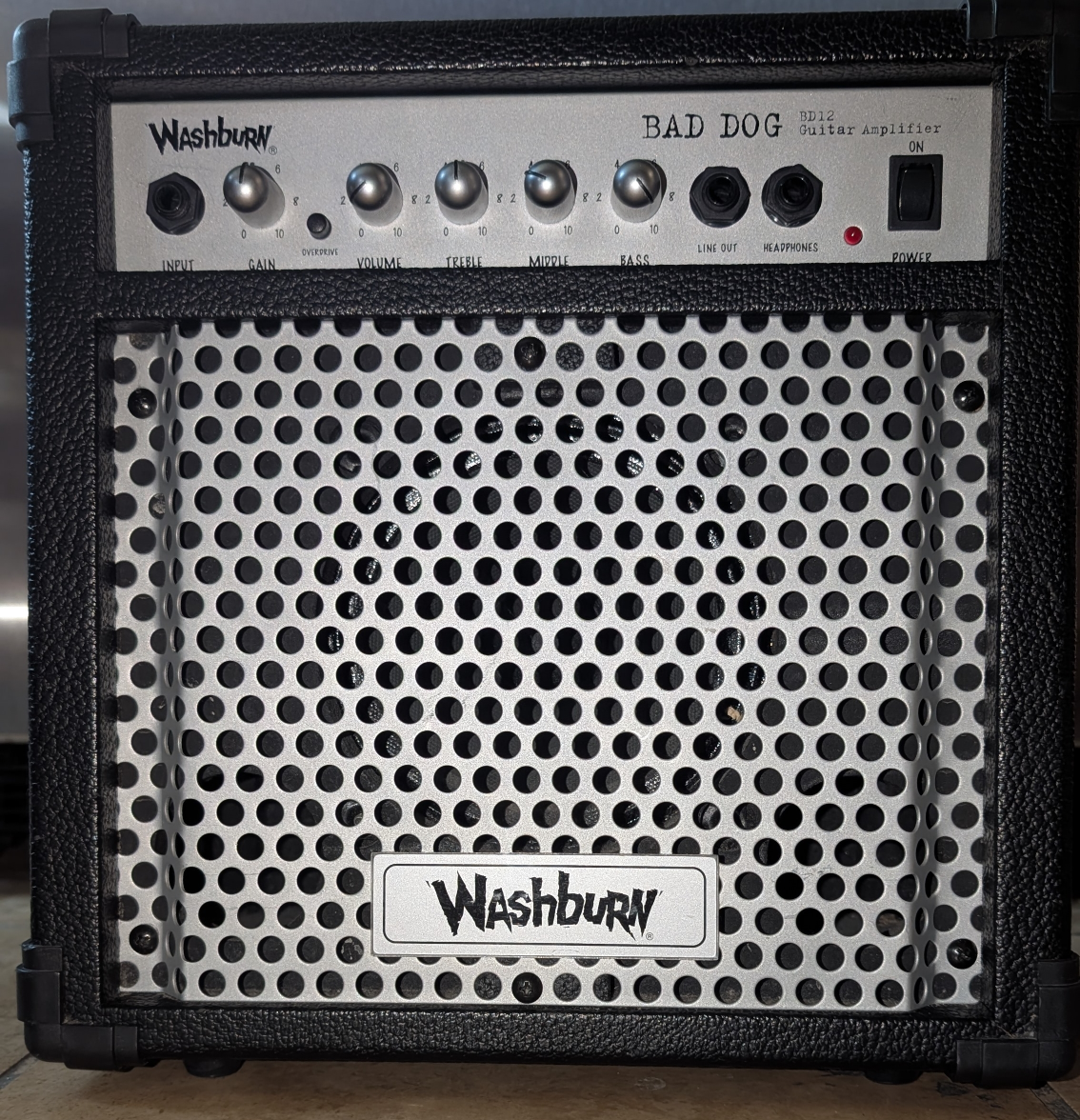 Selling a Washburn Bad Dog BD12 guitar amplifier. It's in great shape and ready to rock! Features include gain, volume, treble, middle, and bass controls, as well as line out and headphone jacks. Perfect for practice or small gigs