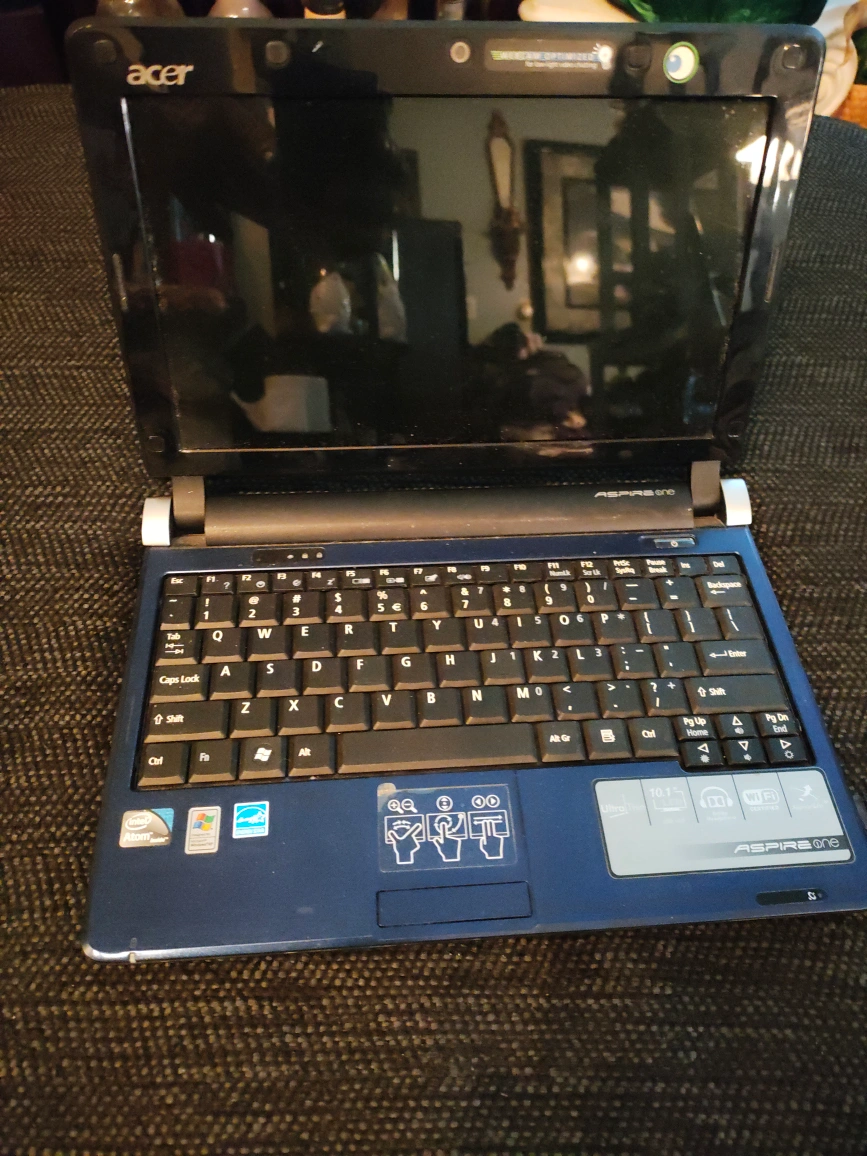 Selling an Acer Aspire One netbook. It's a compact and lightweight computer, perfect for basic tasks and on-the-go use. It features a 10.1" screen and a comfortable keyboard for its size. Great for students or anyone needing a portable device!