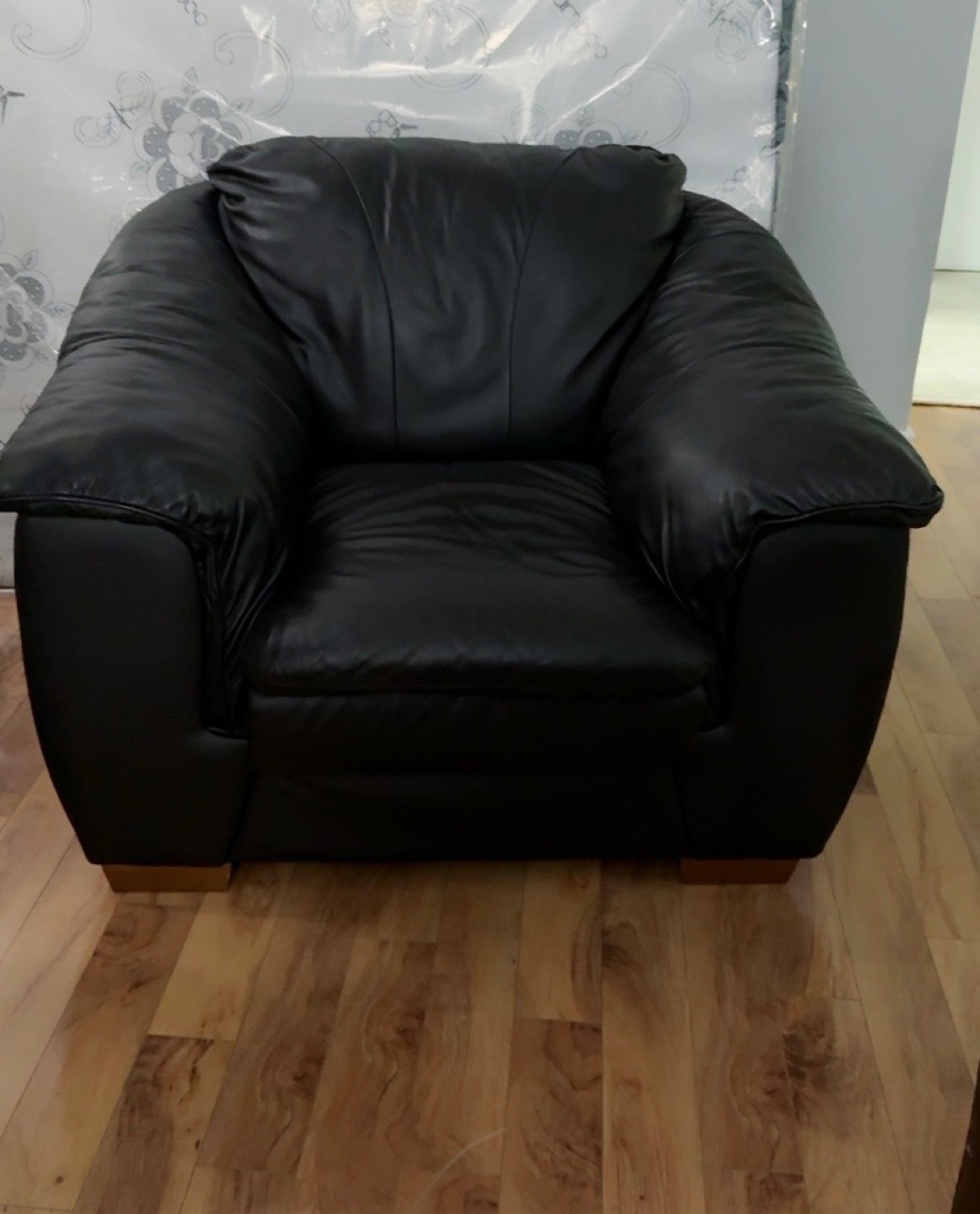 Selling a comfy black leather armchair! It's in good condition and would be a great addition to any living room or den. Perfect for relaxing with a good book or watching your favourite shows