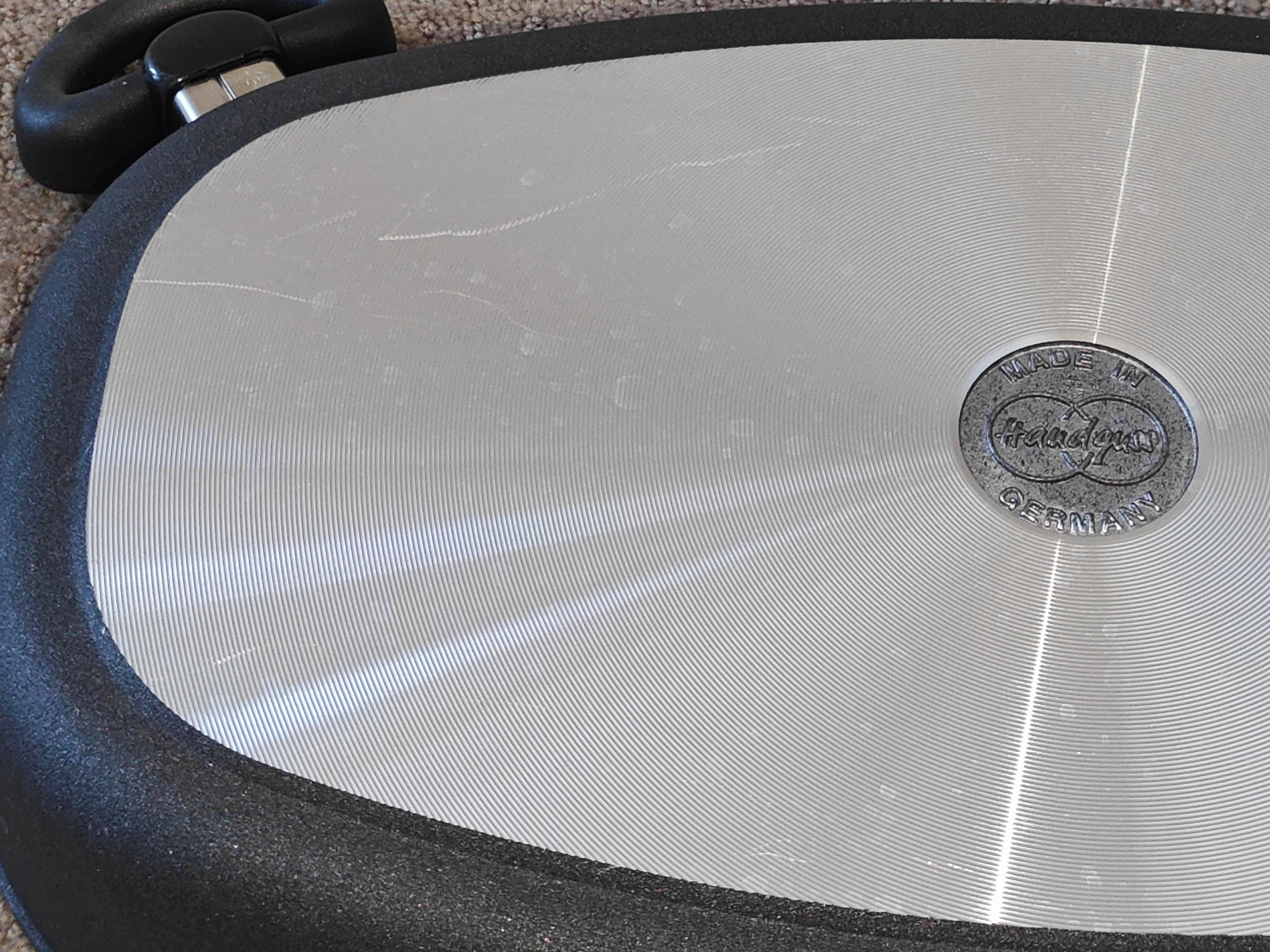 * Lid: Clear tempered glass with integrated handle