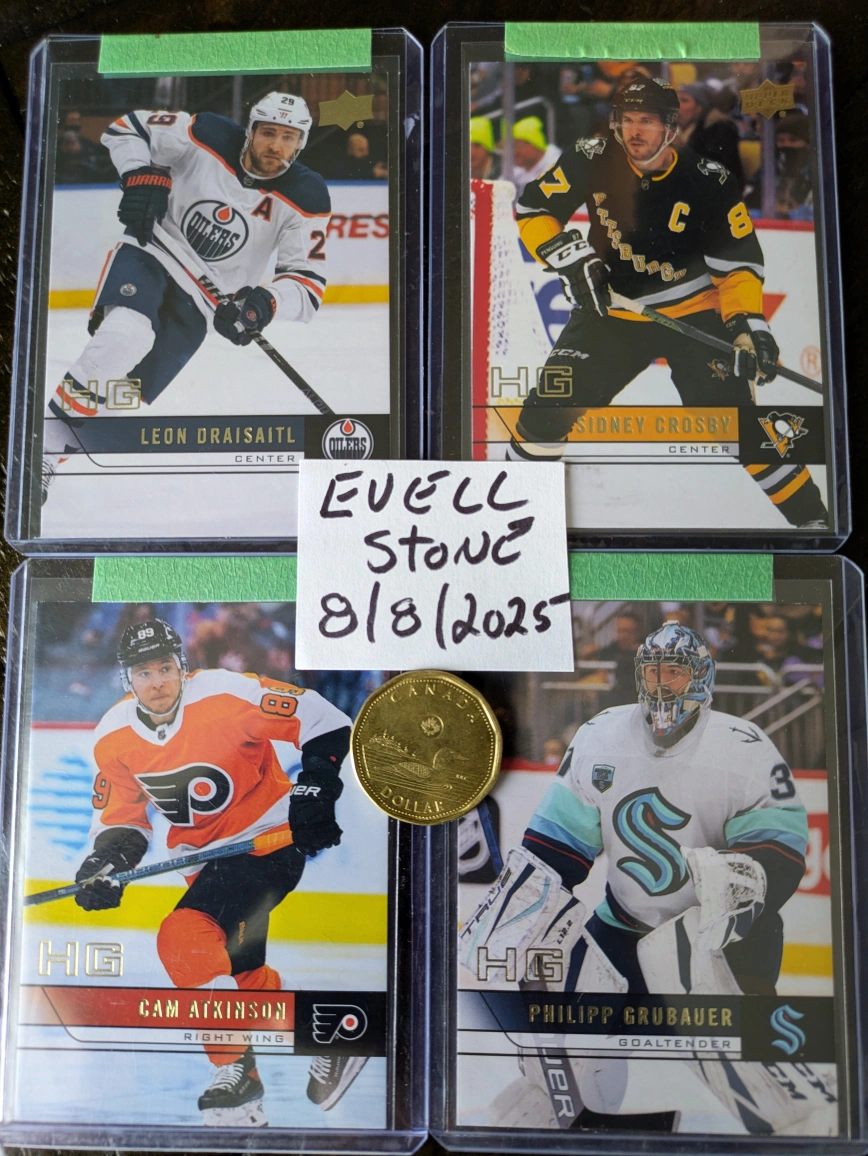 Selling a variety of Upper Deck Gold Stockpile hockey cards! Featuring players like Leon Draisaitl, Sidney Crosby, Cam Atkinson, and Philipp Grubauer. don't forget about those HG cards!..Great for any hockey fan or collector!