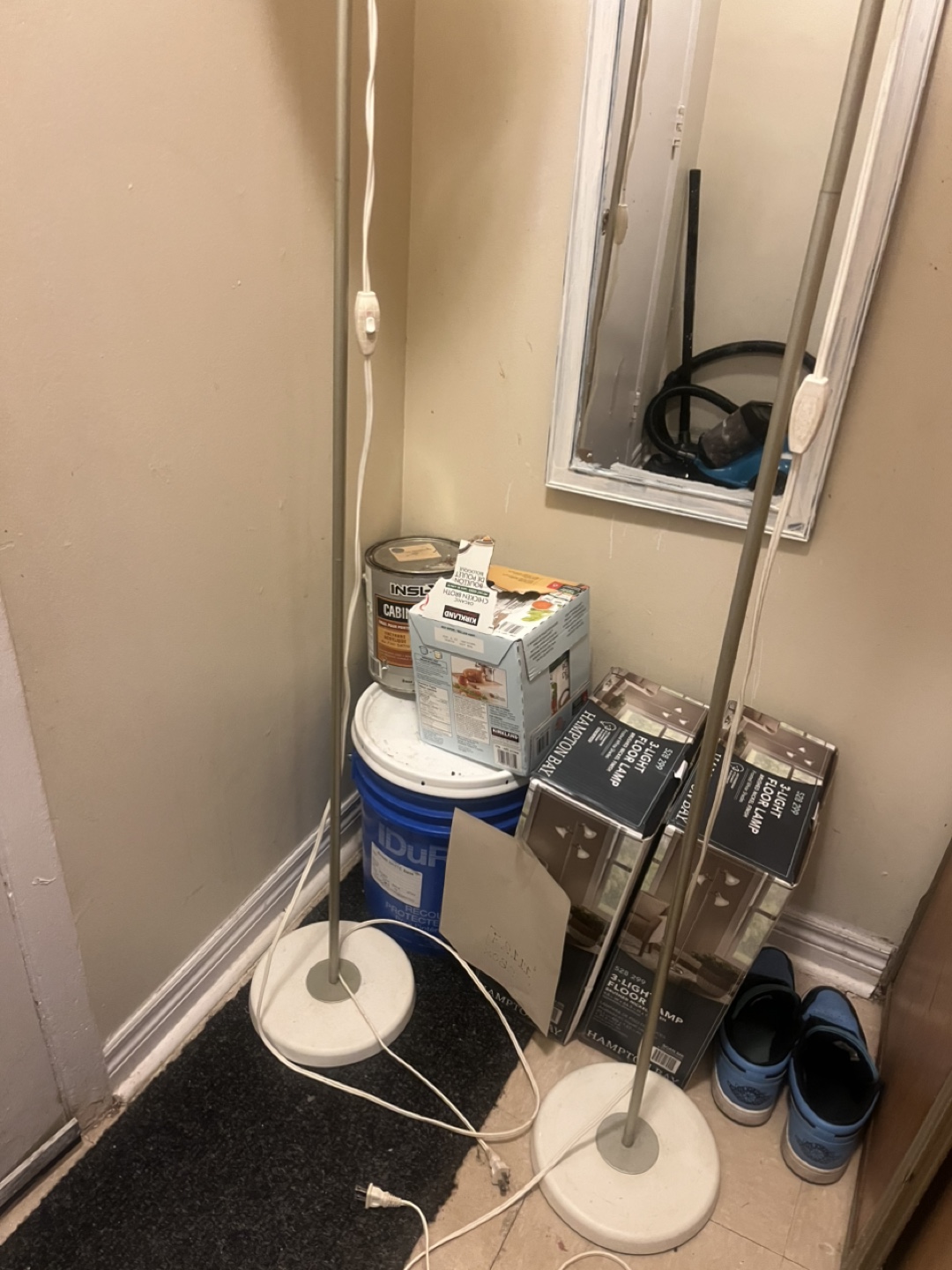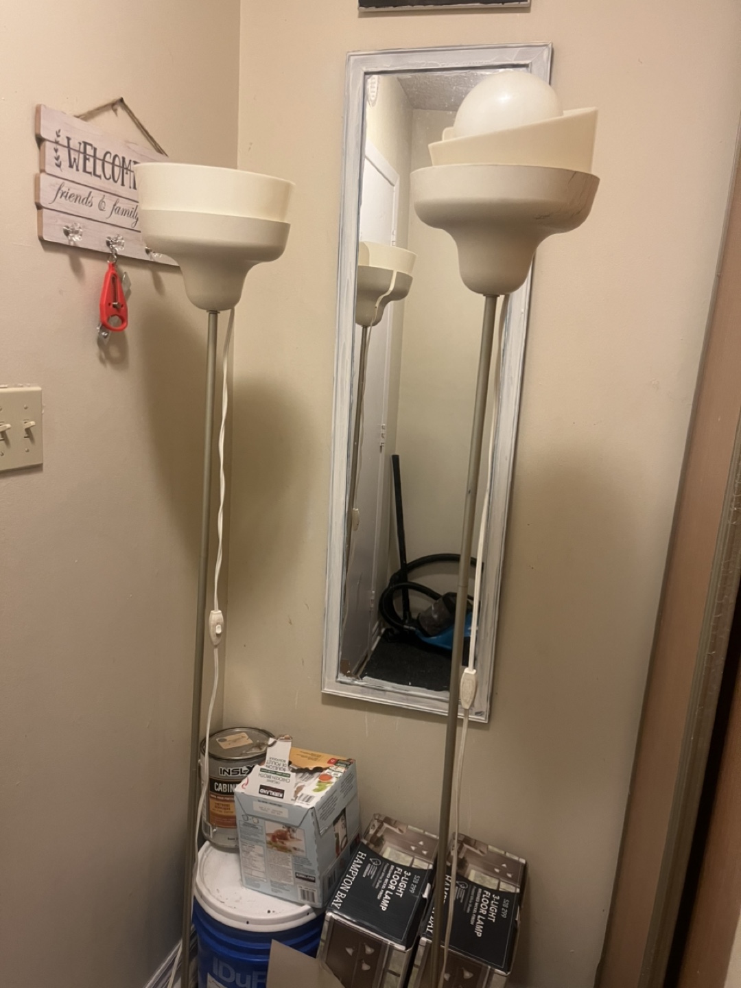 Selling a set of two Hampton Bay high floor lamps. They're in good condition and ready to brighten up your space! Perfect for adding some extra light to any room in your home