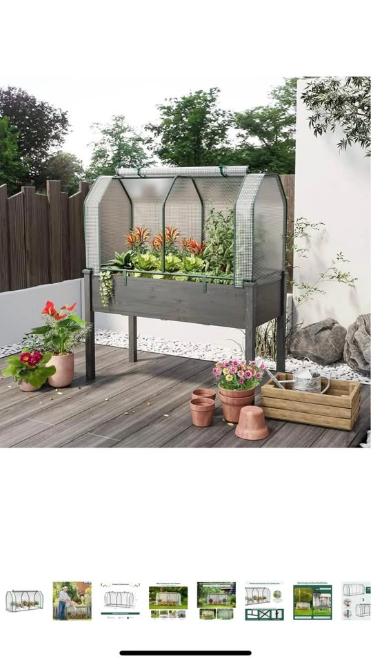 Mini greenhouse from Amazon, great for indoor and outdoor planting. Used only once. Also works to keep plants away from animals who might eat/chew on the leaves or flowers.