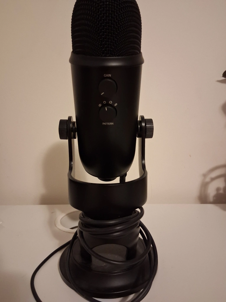 Selling a Blue Yeti USB microphone in the blackout edition. It's in great shape and perfect for podcasting, streaming, or recording music. Features include mute button, volume control, gain control, and multiple pattern selection options. Get clear and professional sound with this versatile microphone!