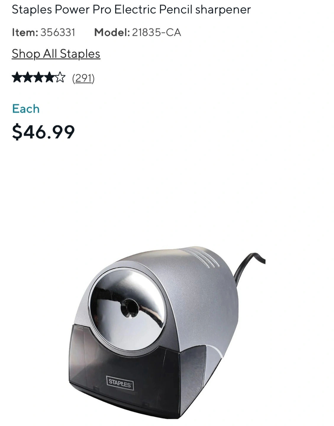 Staples Power Pro Electric Pencil Sharpener