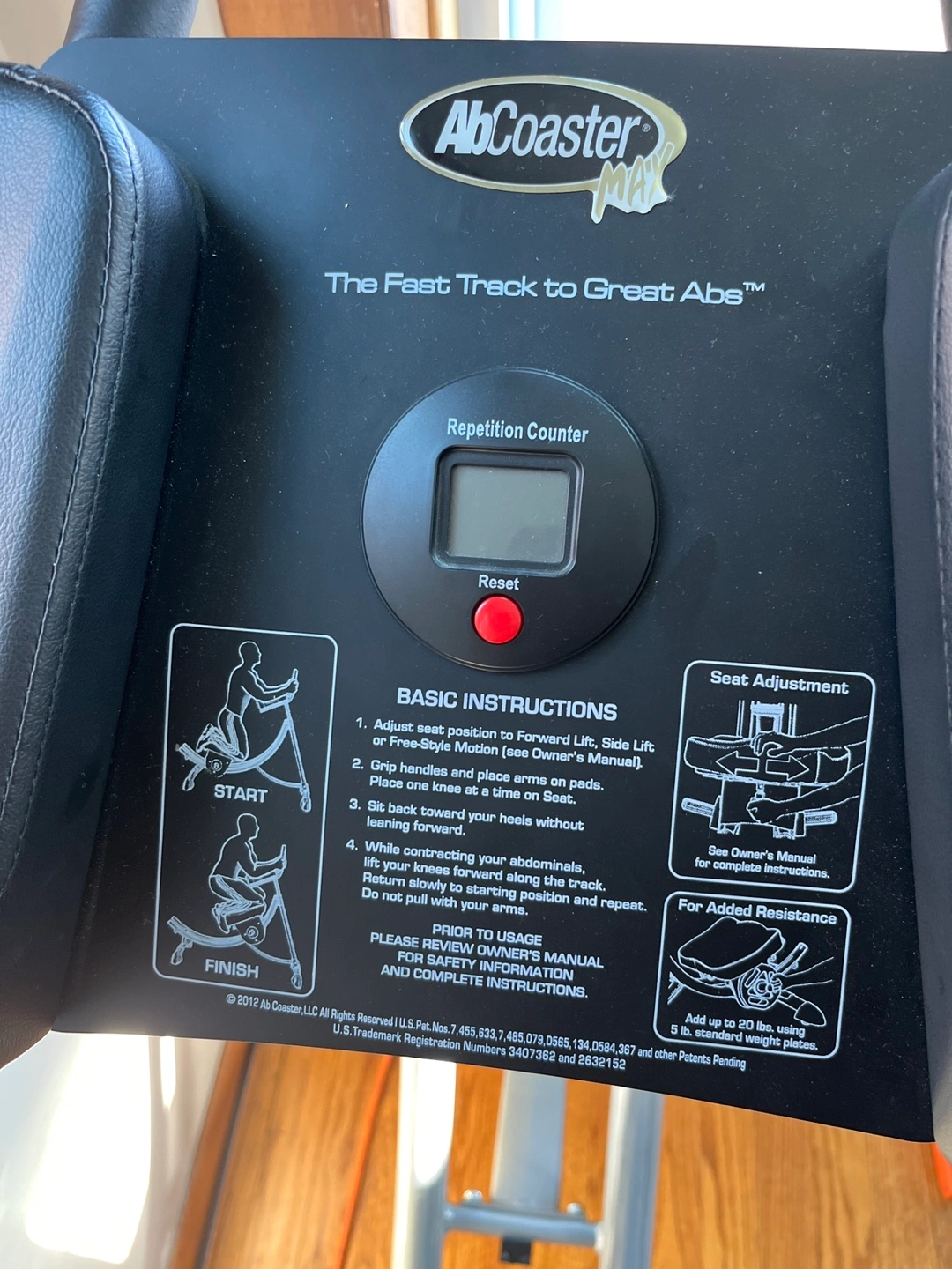 Get ready to work on those abs with this Ab Coaster Max! It's a great piece of equipment for targeting your core muscles. It features a repetition counter to help you keep track of your progress. Add up to 20 lbs using standard weight plates for added resistance
